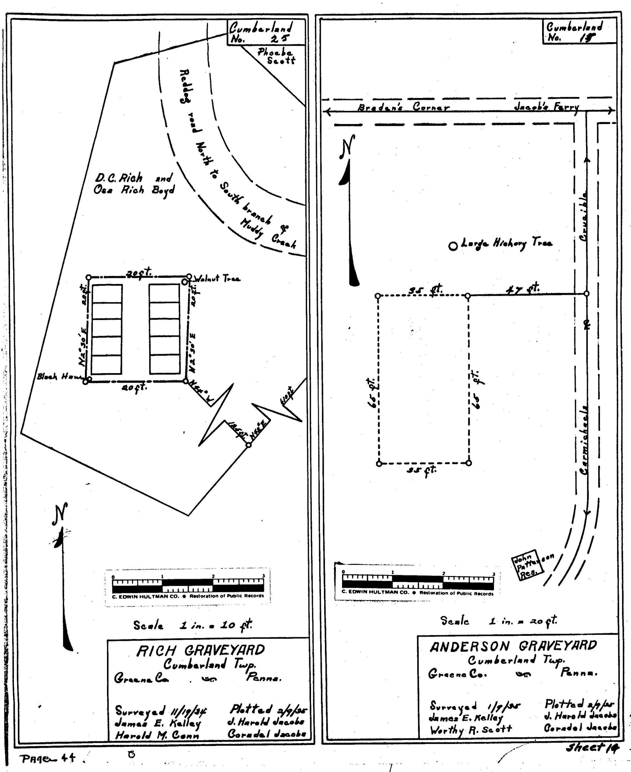 Dorothy T. Hennen, compiler, Cemetery Records of Greene County, Pennsylvania, 12 volumes (Waynesburg, Pennsylvania: Cornerstone Genealogical Society, 1975-1979), 3: 129, index of Cumberland Township cemeteries lists another Anderson Cemetery, which also appears among the WPA Cemetery Plat Maps, but this Anderson Cemetery is either not listed or appears under another name.Collection