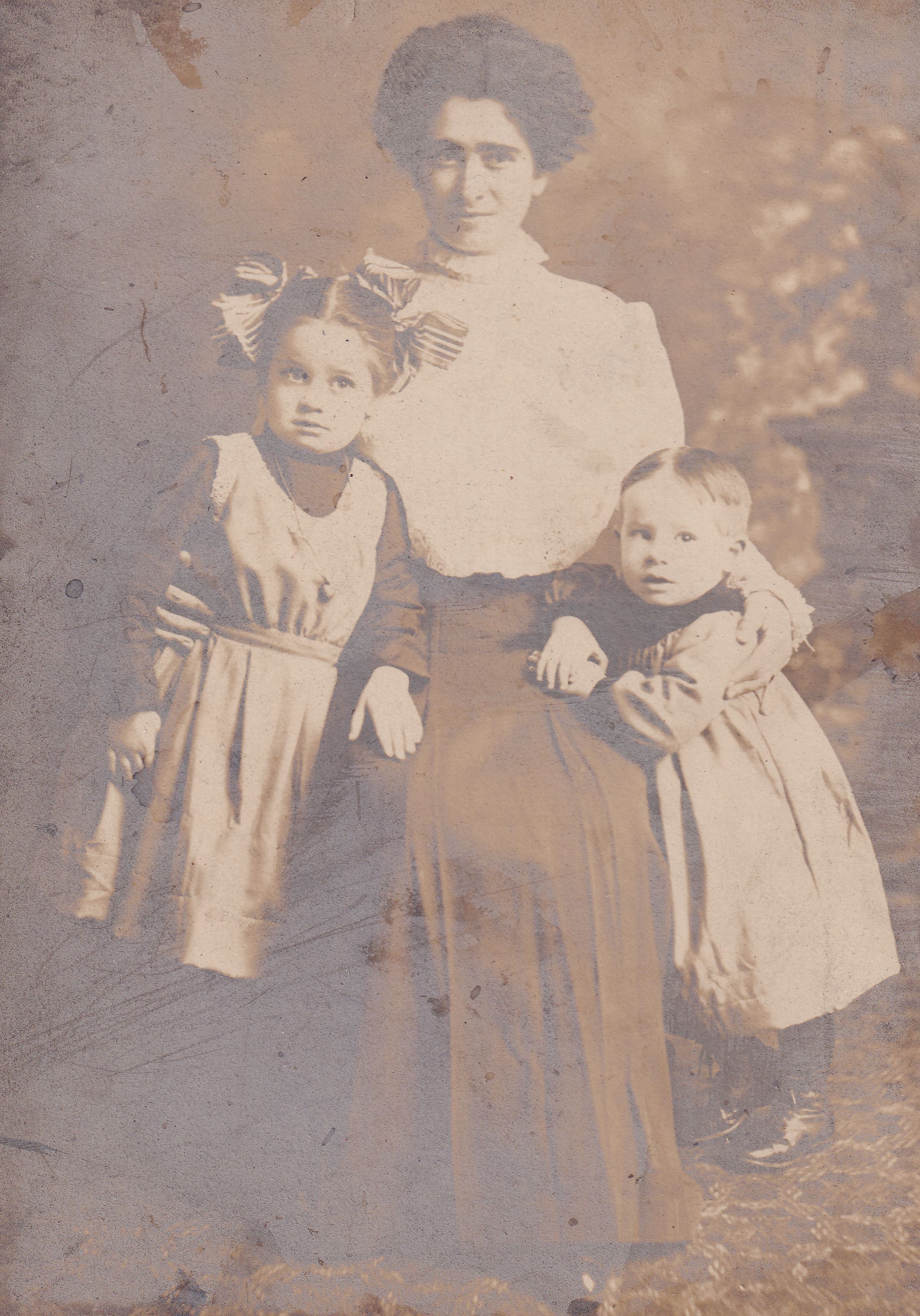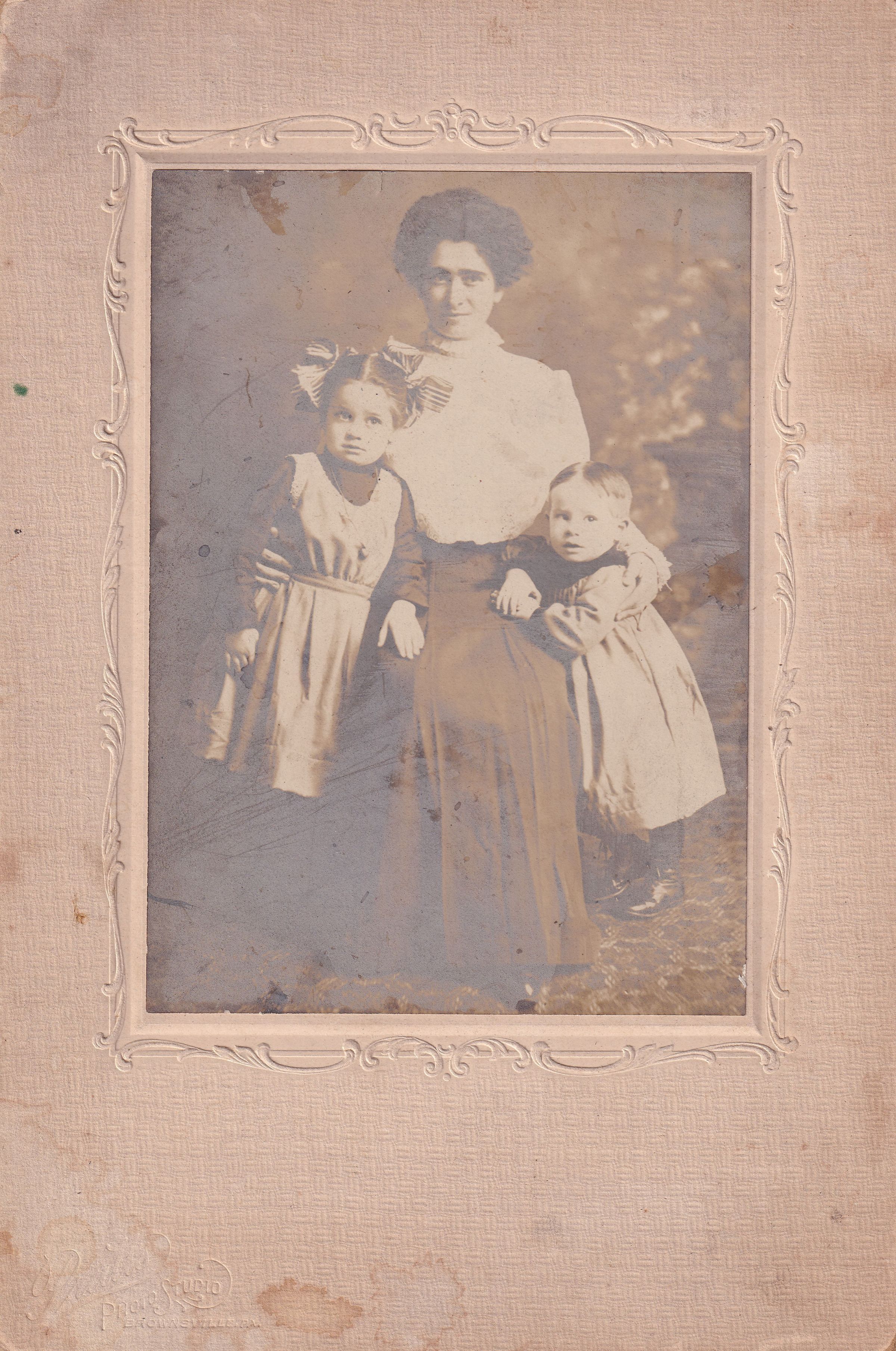 SOURCE CITATION: Anna Frances (Rhodaback) Funk [1880-1952] with her children, [Left-Right] Margaret (Funk) Yauger [1904-1988] and George Herman Funk [1906-1973]; circa 1907; item no. RICL-AN003-0023, Miscellaneous Series, Rices Landing Lock and Dam No. 6 Museum Collection, Greene Connections Archives Project (www.GreeneConnections.com).