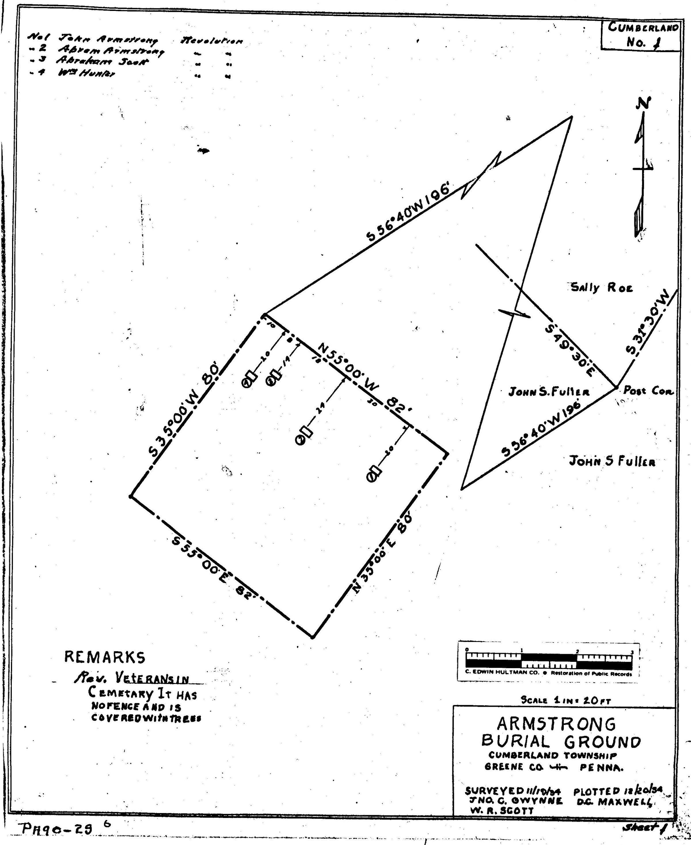 Armstrong Cemetery (Cumberland Township), Armstrong family, Cemetery, Cemetery Plat (WPA), Cumberland Township, Hunter family, Map, Scott familyArchive Details