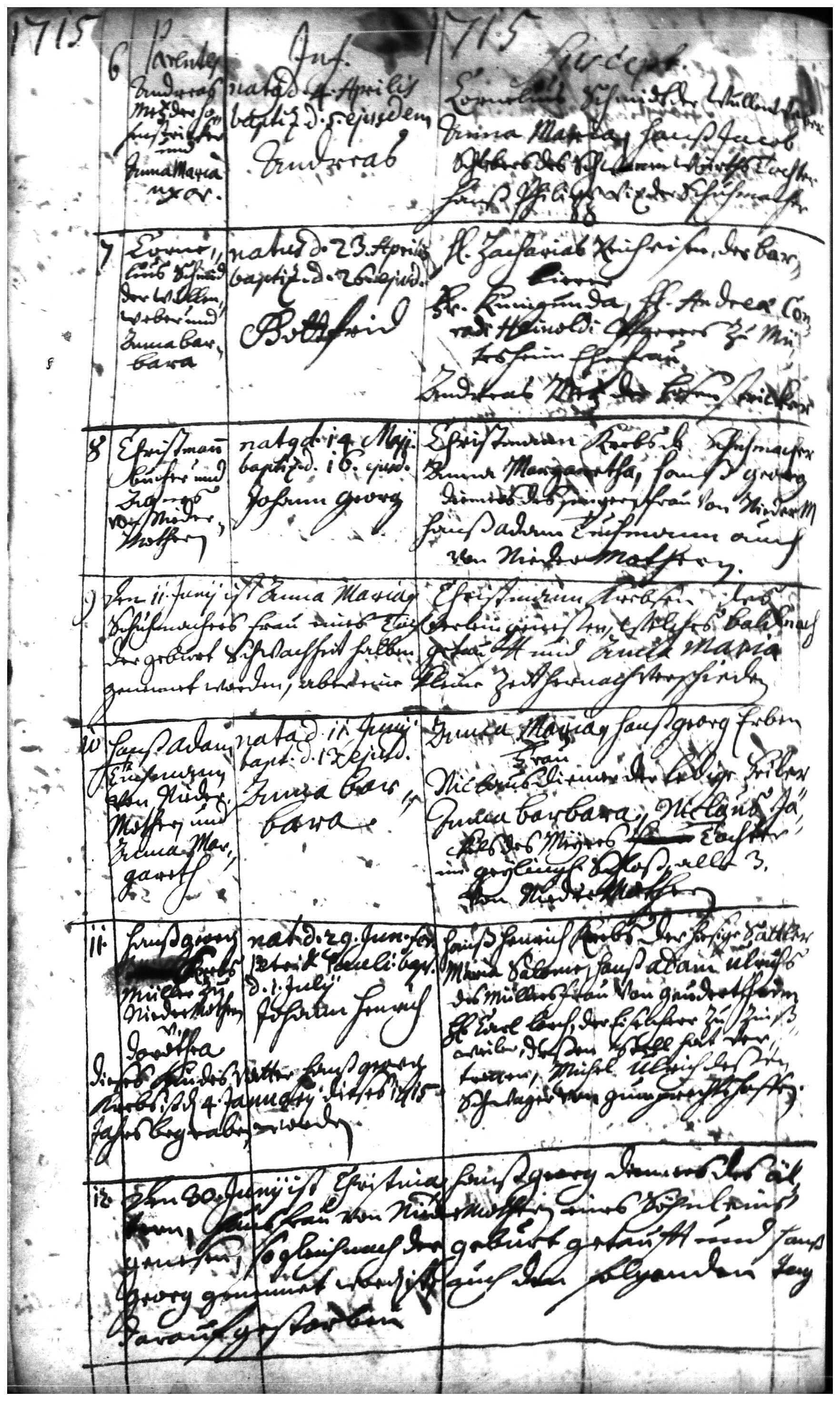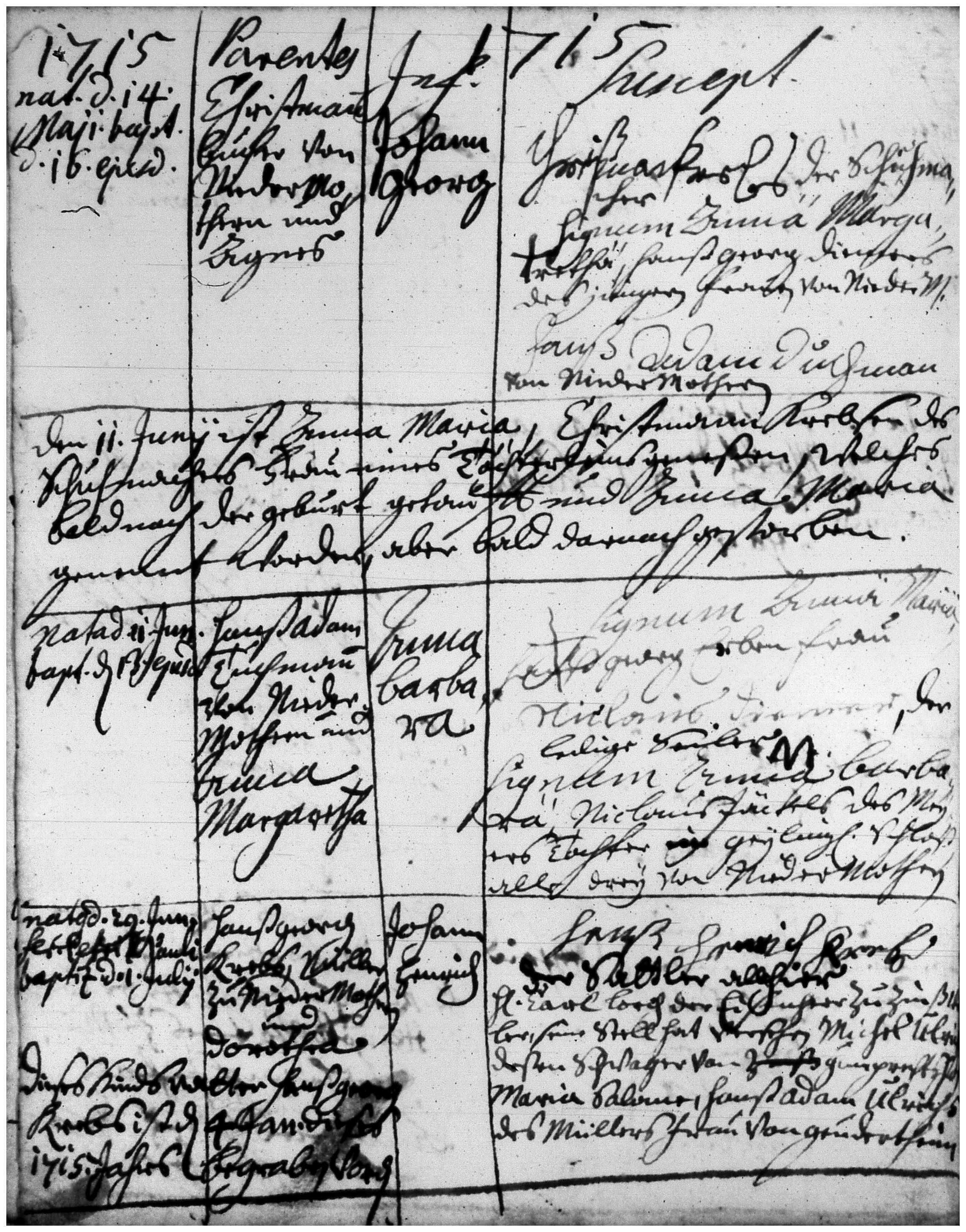 "1715 nata d. 11. Jun. bapt. d. 13 ejusd.