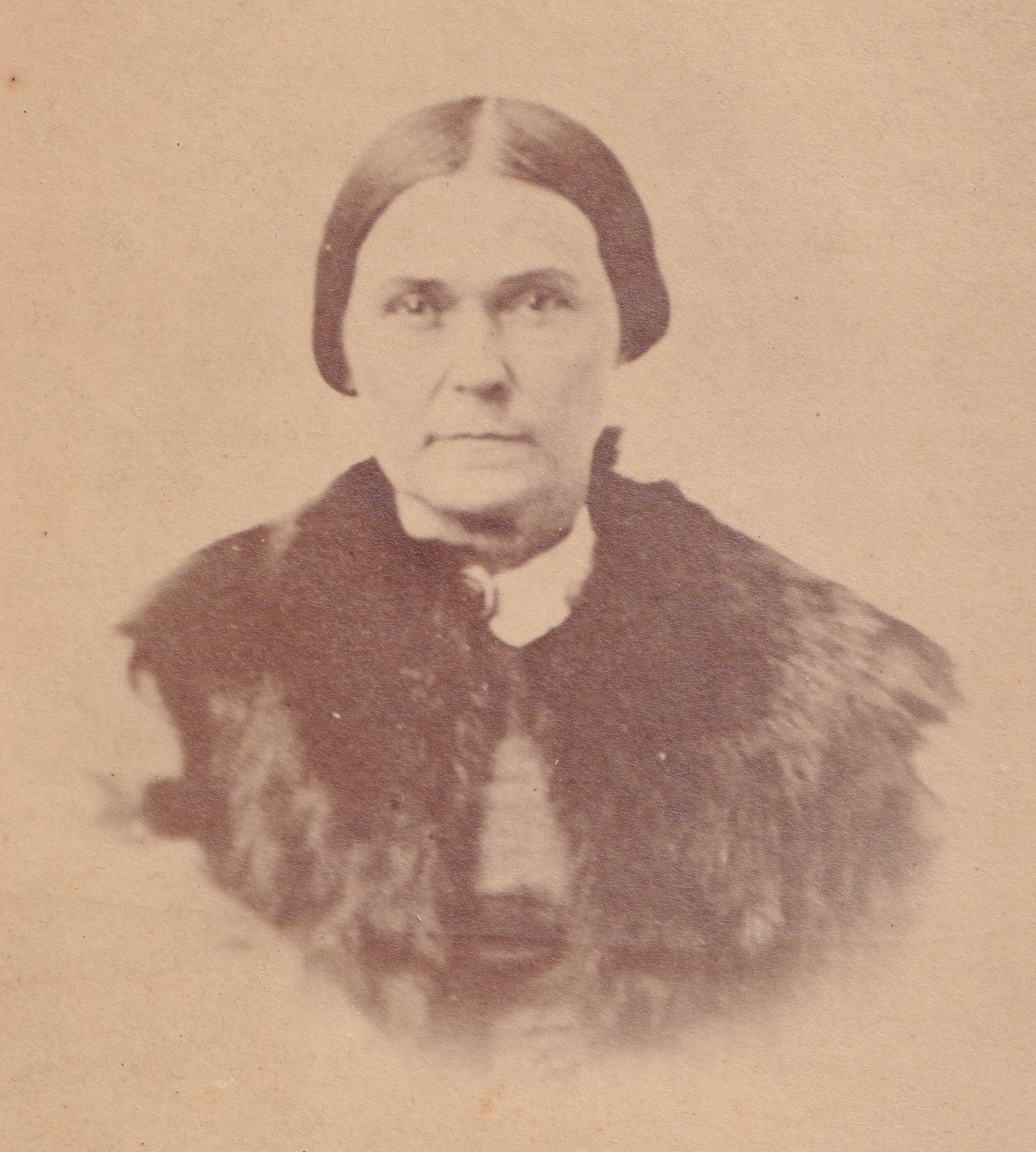 SOURCE CITATION: Mary Jane (McConnell) (Andrew) Kirkland [1809-1863] - wife of (1) William Andrew [1801-1850] and (2) James Kirkland [1817-1876], daughter of James McConnell [1784-1840] and Elizabeth Luckey [1786-1863]; image is an 1870s-era reproduction by S. G. Rogers, Waynesburg, Pa., of an earlier 1850s-1860s era photograph; item no. CGSP-AN014-0002, Anna Mary (Ritchie) Armstrong Series, donated by Suzanne Floyd, 2022; Cornerstone Genealogical Society Collection, Greene Connections Archives Project (www.GreeneConnections.com).