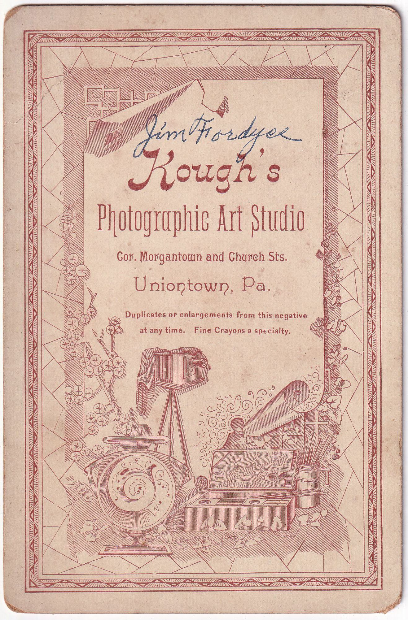 Original, professional photograph from Kough's Photographic Art Studio, Cor. Morgantown and Church Sts., Uniontown, Pa.Photograph Details