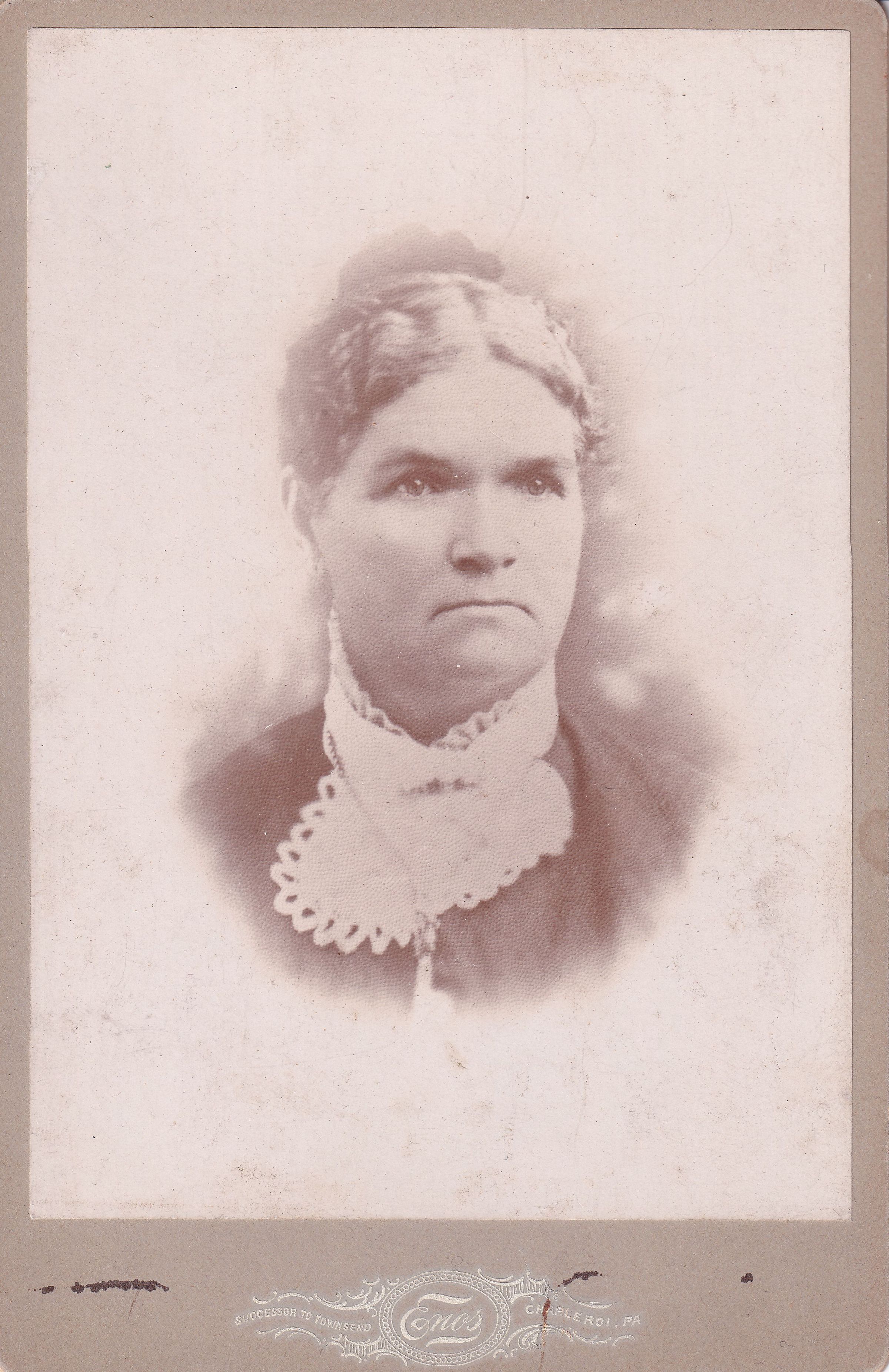 SOURCE CITATION: Believed to be Margaret (McClain) Metz [1830-1897]; circa 1870-1890, image by Enos, Charleroi, Pa.; item no. RICL-AN003-0002, Miscellaneous Series, Rices Landing Lock and Dam No. 6 Museum Collection, Greene Connections Archives Project (www.GreeneConnections.com).