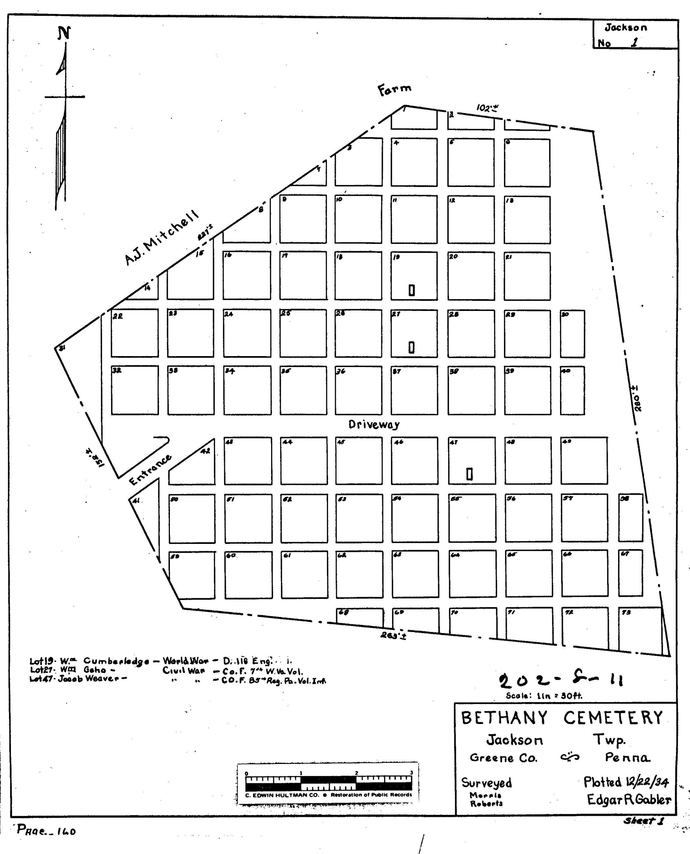 Cemeteries--Maps, Cumberledge family, Geho family, Jackson (Greene County, Pa. : Township)--Cemeteries--Bethany Cemetery, Weaver familyProvenance