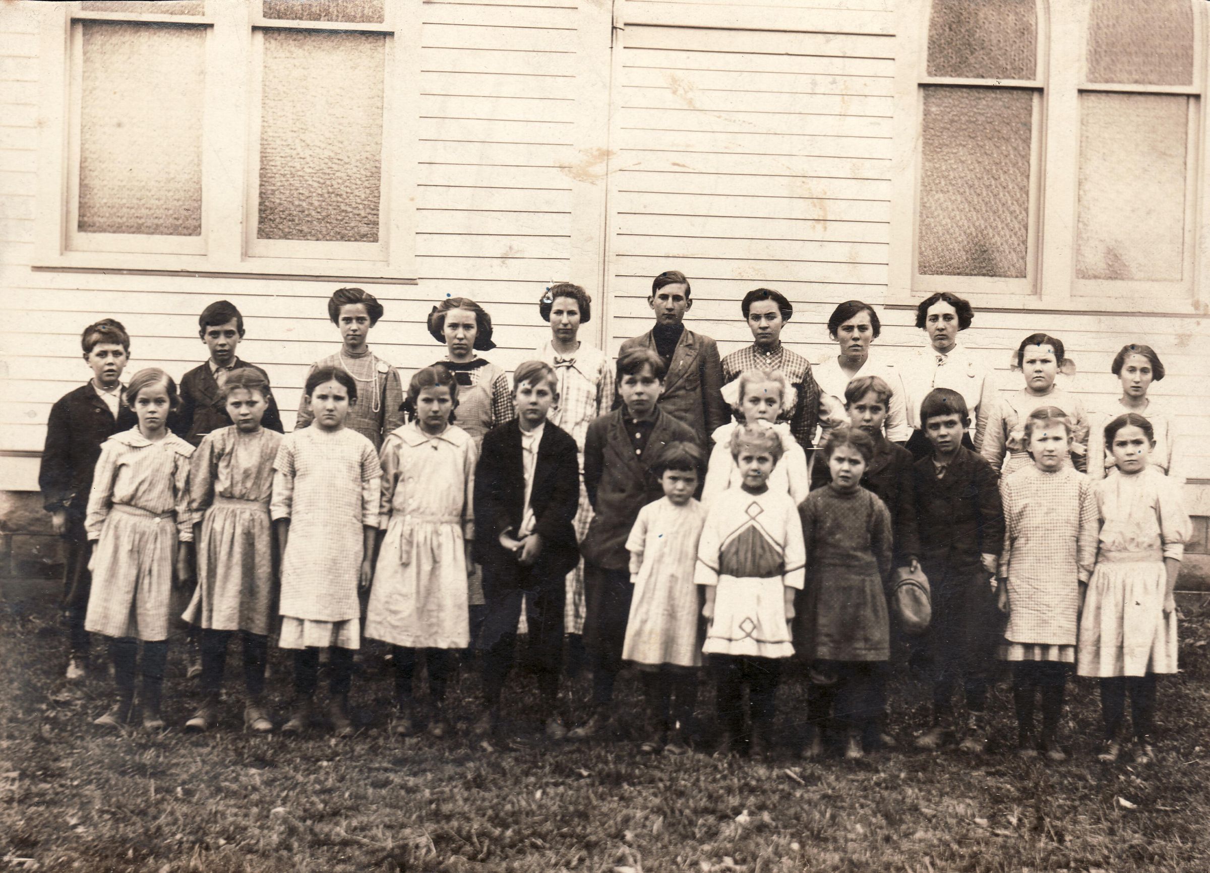 SOURCE CITATION: Beulah School in Morris Township, Greene County, Pennsylvania, [Left-Right]: BACK ROW - Harry Anderson, Arthur Anderson, Gertrude Tilton, Mary Tilton, Grace Lightner, Tim Lightner, Artie Murdock, Effie Beabout, Lena Simpson - Teacher, Grace Price, Bessie Lightner, MIDDLE ROW - Edith Tilton, Unidentified, Icy Price, Helen Lightner, Unidentified, Glen Carter, Olive Clutter, Roy Carter, Unidentified, Edna Price, Cora Stewart, FRONT ROW - Ethel Stewart, Etta Clutter, Cora Jenkins; dated 1913; item no. SUPL-AN007-0004, School Series, Wayne Carl Swart Collection, Greene Connections Archives Project (www.GreeneConnections.com).