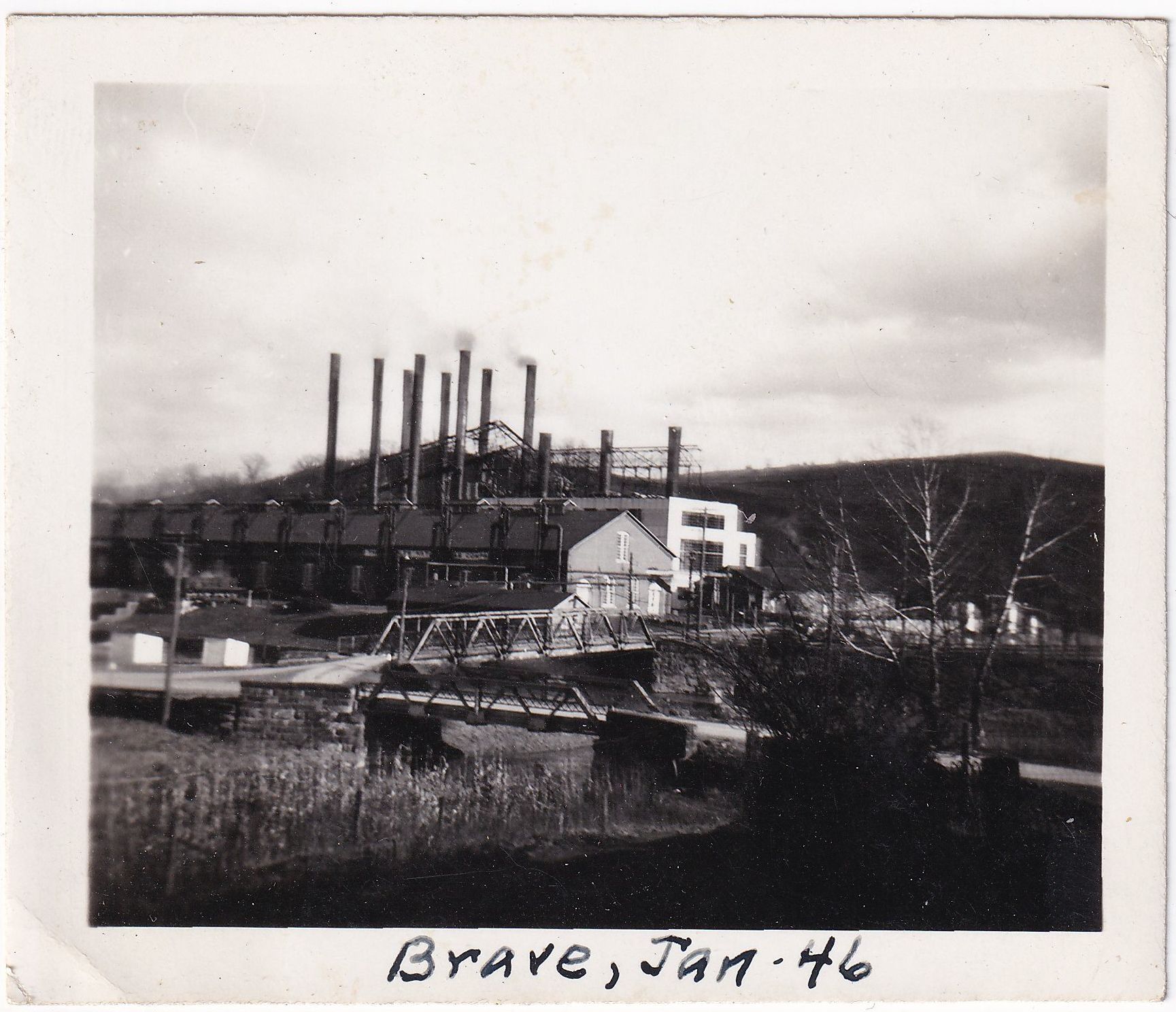 SOURCE CITATION: Brave Pumping Station, owned by the Peoples Natural Gas Company (PNGC), in Brave, Greene County, Pennsylvania; dated January 1946; item no. CMBL-AN004-0005-0004, George Lindsey Cole Series, Matt W. Cumberledge Collection; Greene Connections Archives Project (GreeneConnections.com).
