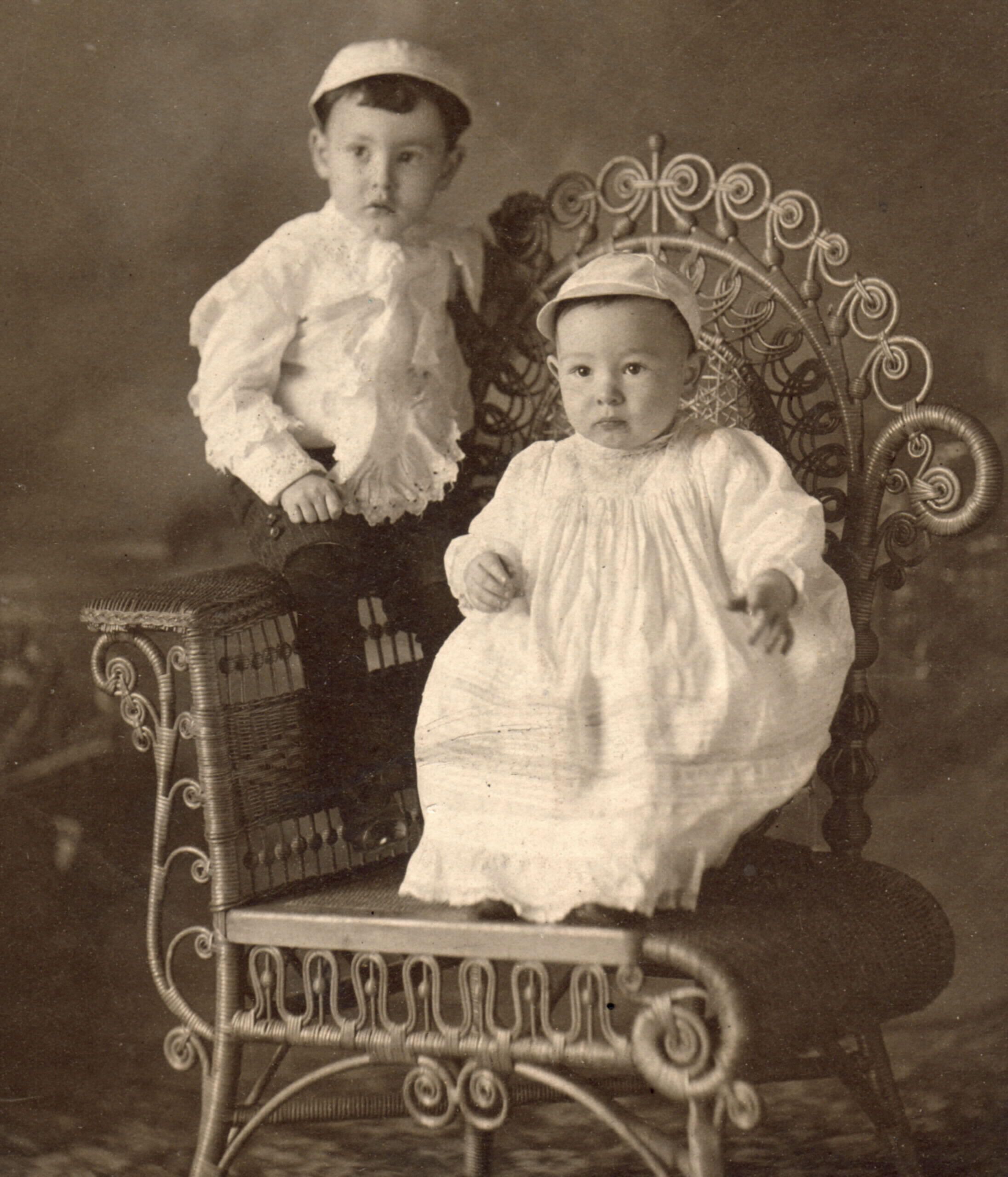 SOURCE CITATION: [Left-Right]: Brentford Thornton Toothman and Kenneth R. Toothman - sons of Omer Scott Toothman and Delesta Fury; circa 1900, image by Porter's Art Gallery, Connellsville, Pa.; item no. TOOK_AN003_0001_0050, Toothman-Hoult Series, Katherine Jane (Throckmorton) Toothman Collection, Greene Connections: Greene County, Pennsylvania Archives Project (www.GreeneConnections.com).