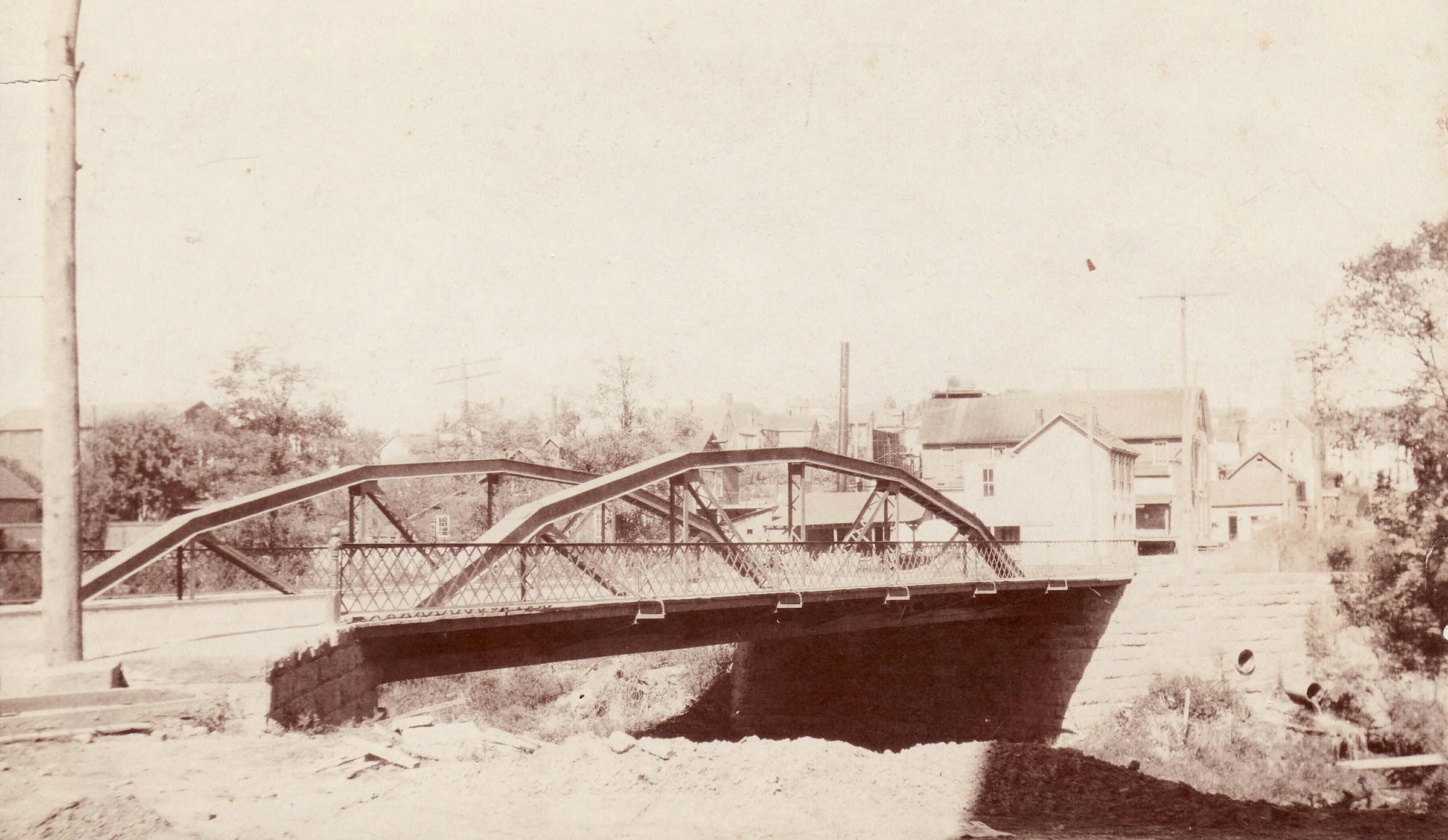 Source Citation: Bridge on Morgan Street (looking toward town from Waynesburg Brewing Company) in Waynesburg, Greene County, Pennsylvania, item no. WAYN_AN004_0005, Waynesburg University Paul R. Stewart Museum Collection, Greene Connections Archives Project (www.GreeneConnections.com).