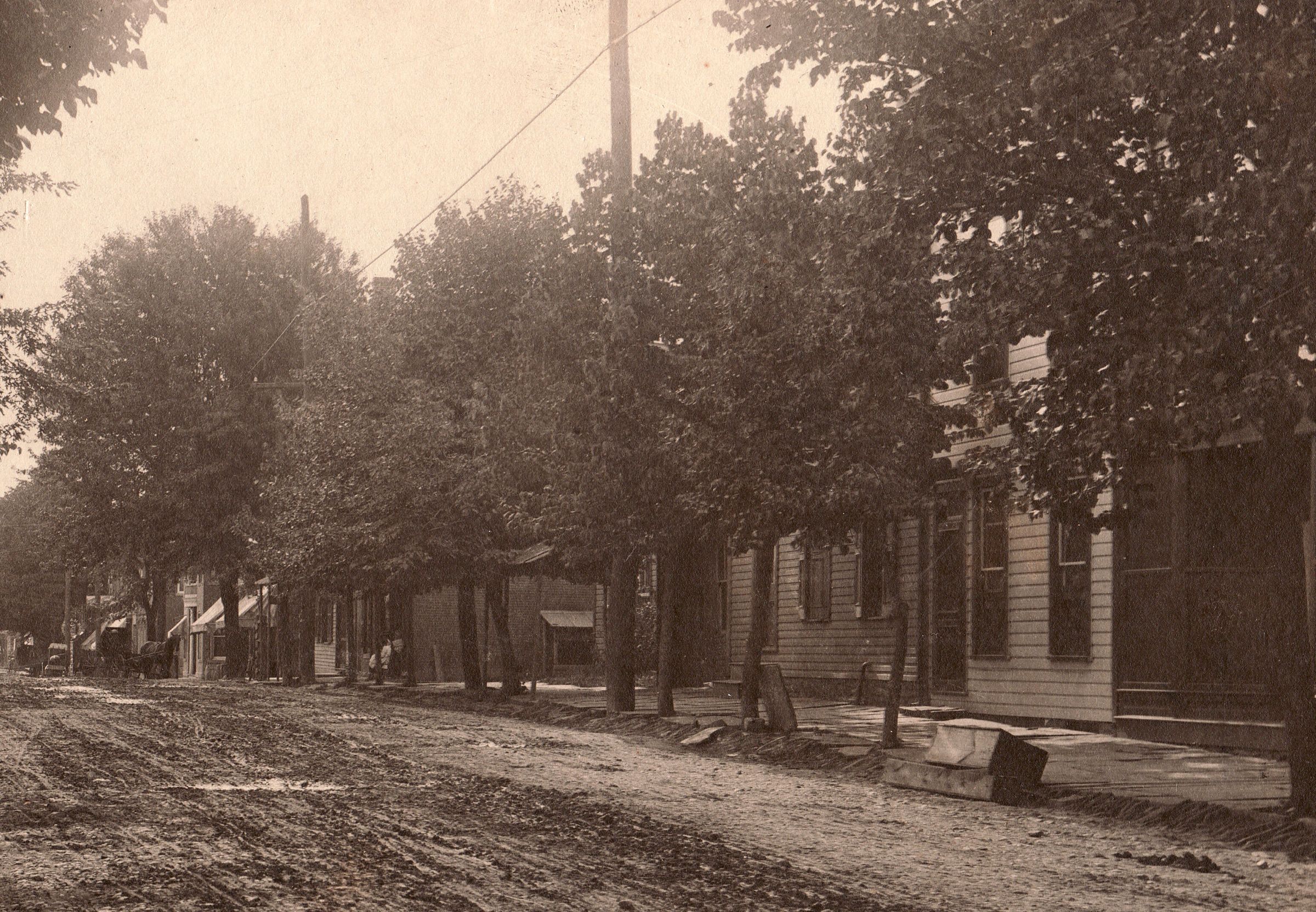 Source Citation: High Street (looking west from Cumberland Street) in Waynesburg, Greene County, Pennsylvania, item no. WBGB-AN001-0007, Waynesburg Borough Office Collection, Greene Connections Archives Project (www.GreeneConnections.com).