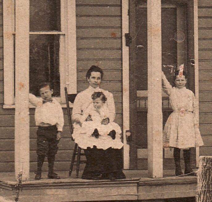HOUSE ENTRANCE - Cecil Hamilton Headlee [1904-1977], Laura (South) Headlee [1881-1954] holding Edith Grace Headlee [1909-1970], Jane (Headlee) Renner [1900-2001].
