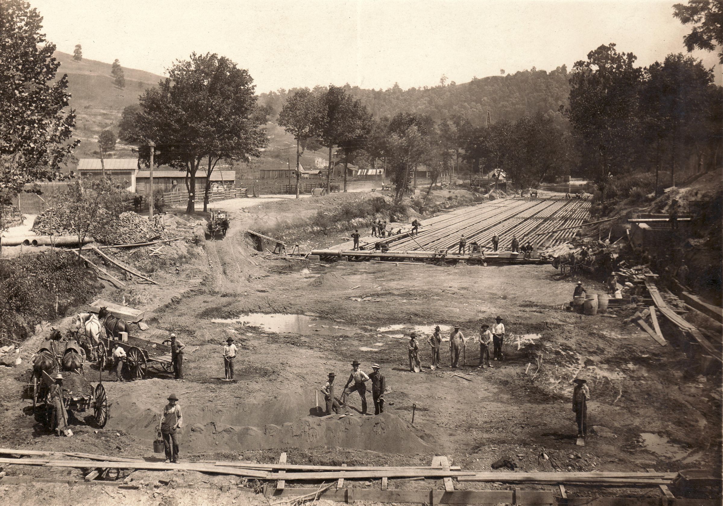Source Citation: Cooling Pipes at the Gas Pumping Station in Brave, Greene County, Pennsylvania, item no. WBGB-AN003-0002, Waynesburg Borough Office Collection, Greene Connections Archives Project (www.GreeneConnections.com).