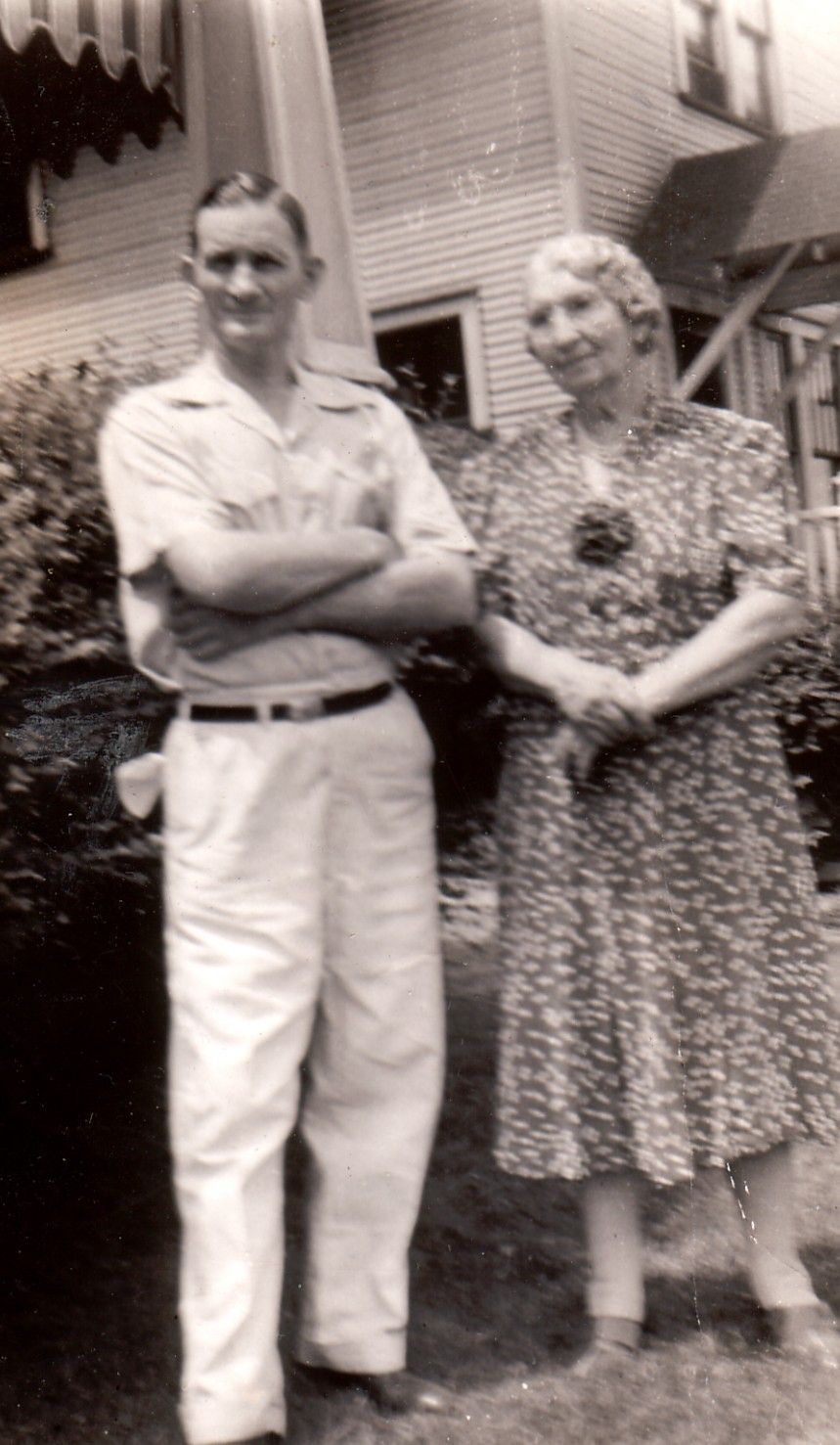 SOURCE CITATION: Harvey Pratt Stickles [1887-1973] and his mother, Harriet Jennie (Wood) (Reddick) Miller [1867-1953]; circa 1940-1950; item no. STIC0002, Lorraine (Stickles) Elias Collection; Greene Connections Archives Project (GreeneConnections.com).