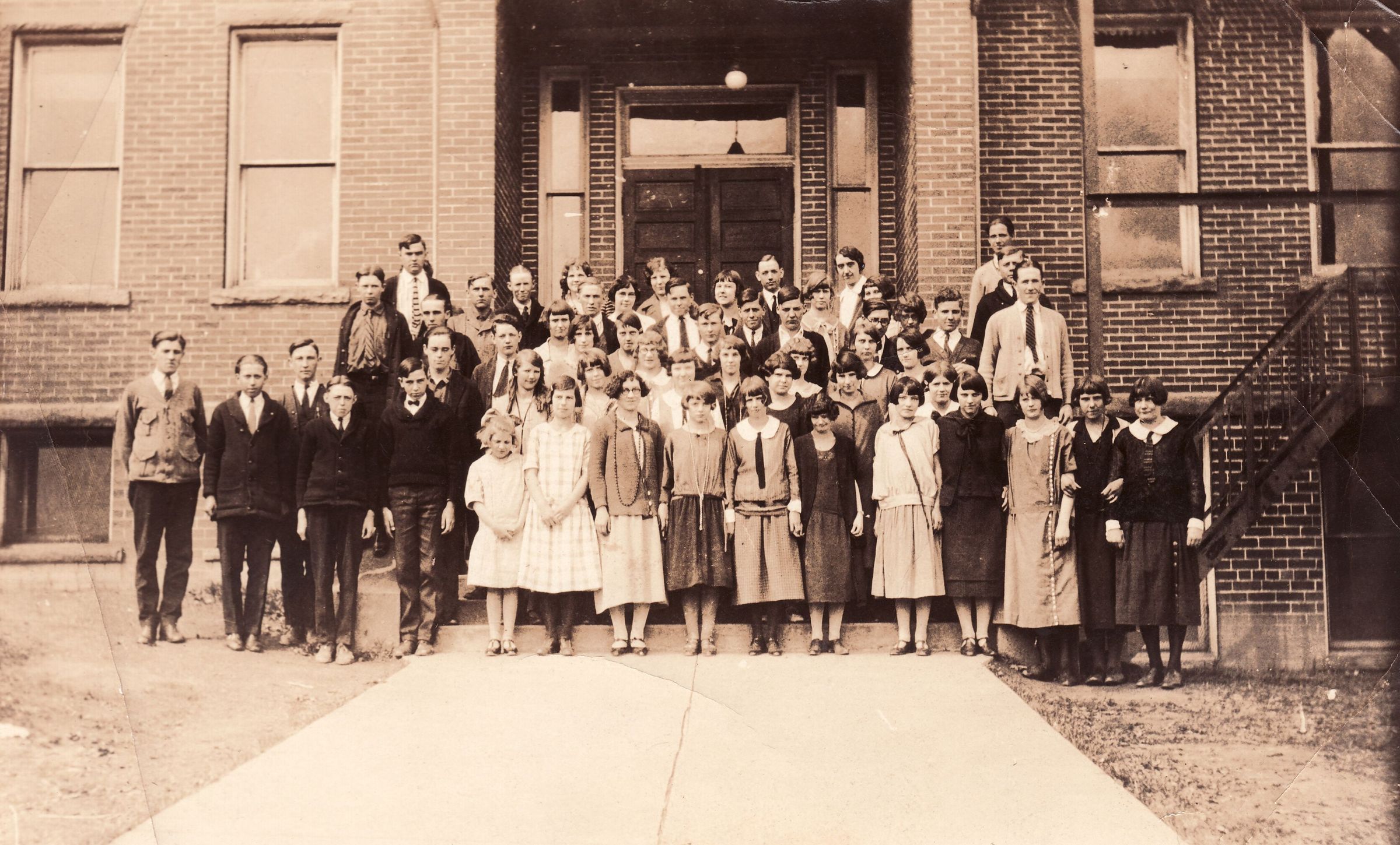 SOURCE CITATION: Center Township High School in Rogersville, Center Township, Greene County, Pennsylvania; circa 1920-1930; item no. BOWL0014, Bowler Series, Ella Ruth (Bowler) Turner Collection; Greene Connections Archives Project (GreeneConnections.com).