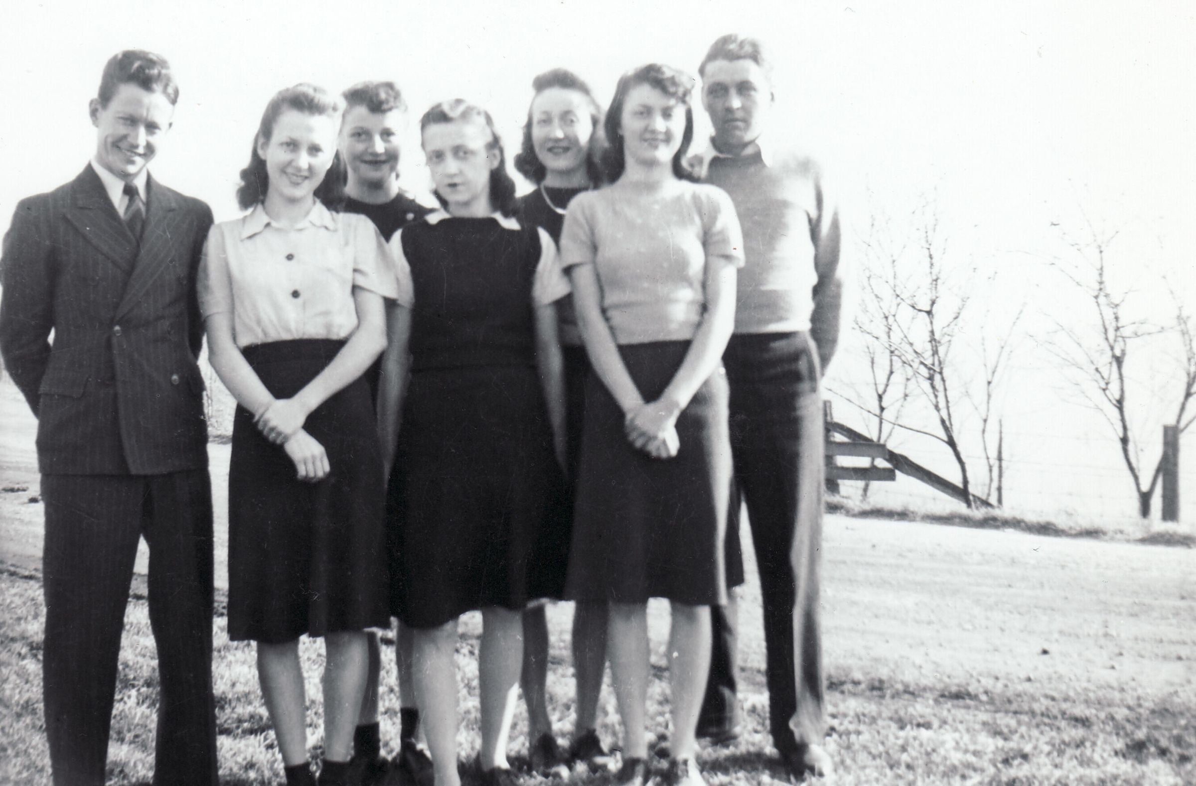 Children of Dennis Floyd Cowell and his wife, Haddie Luella (Keener) Cowell, pictured [Left-Right]: Harold Floyd Cowell, Margaret Jean (Cowell) Shields, Gladys Anna "Bunt" (Cowell) Rich, Inez Ruth (Cowell) Dean, Sarah Pearl (Cowell) Edwards, Mary Alene (Cowell) Roberts, Willis Clarence Franklin "Bill" Cowell.Collection