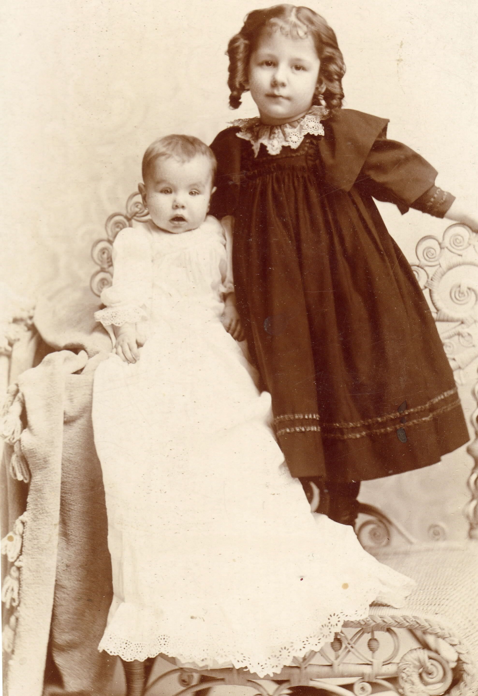 Source Citation: [Left-Right]: Goldie (Spragg) (Wendler) Hall and Ruth (Spragg) DeMars - daughters of George H. Spragg & Minnie Walters, item no. YEAT_AN002_0018, Spragg Series, Thelma (White) Yeager Collection, Greene Connections Archives Project (www.GreeneConnections.com).