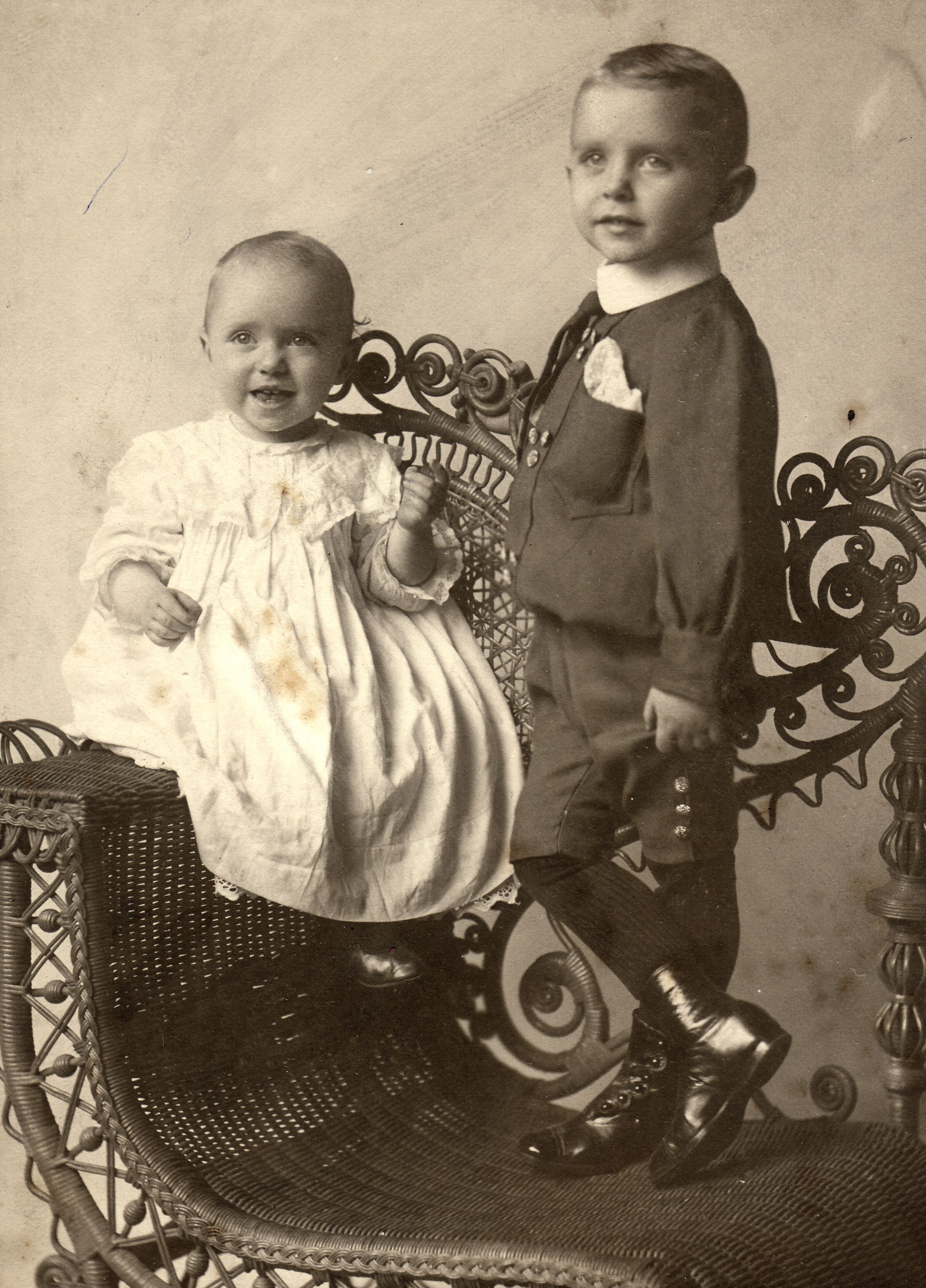 Source Citation: [Left-Right]: Isabelle Myers (Crayne) Swecker and David Bell Crayne - children of Hal Crayne Sr. and Elizabeth Myers, item no. CGSP_AN003_0023, Lynn Myers Crayne Series, Cornerstone Genealogical Society Collection, Greene Connections Archives Project (www.GreeneConnections.com).