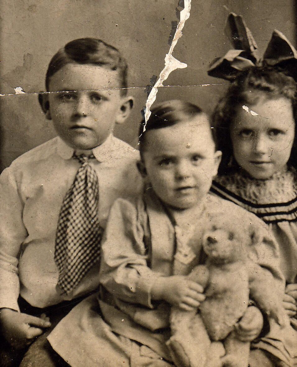 Source Citation: [Left-Right]: David Bell Crayne, Allan Hill Crayne, Isabelle Myers (Crayne) Swecker - children of Hal Crayne Sr. and Elizabeth Rush Myers, item no. CGSP_AN003_0028, Lynn Myers Crayne Series, Cornerstone Genealogical Society Collection, Greene Connections Archives Project (www.GreeneConnections.com).