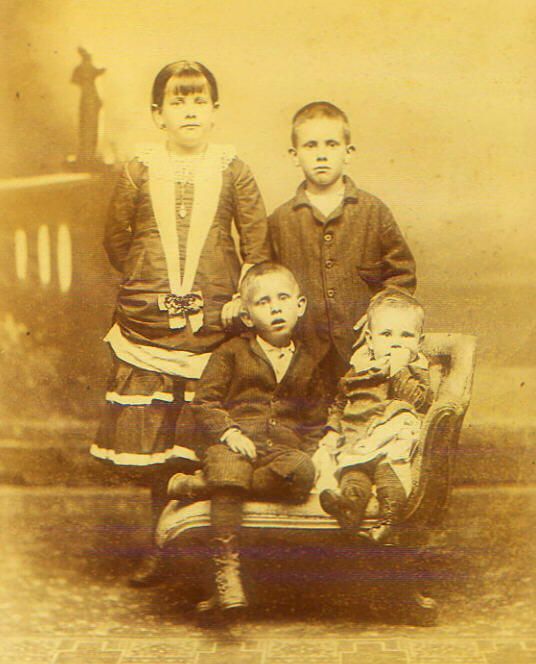SOURCE CITATION: Four eldest children of James Boyd and his wife, Amanda (Arnold) Boyd, pictured [Left-Right]: BACK - Gertrude J. Boyd, Wilbert Ellis Boyd, FRONT - Horatio Seymore Boyd, Emory Culverton Boyd; circa 1885; item no. GARR-AN001-0001-0001, Boyd Series, James Albert Garrettson Collection, Greene Connections Archives Project (www.GreeneConnections.com).