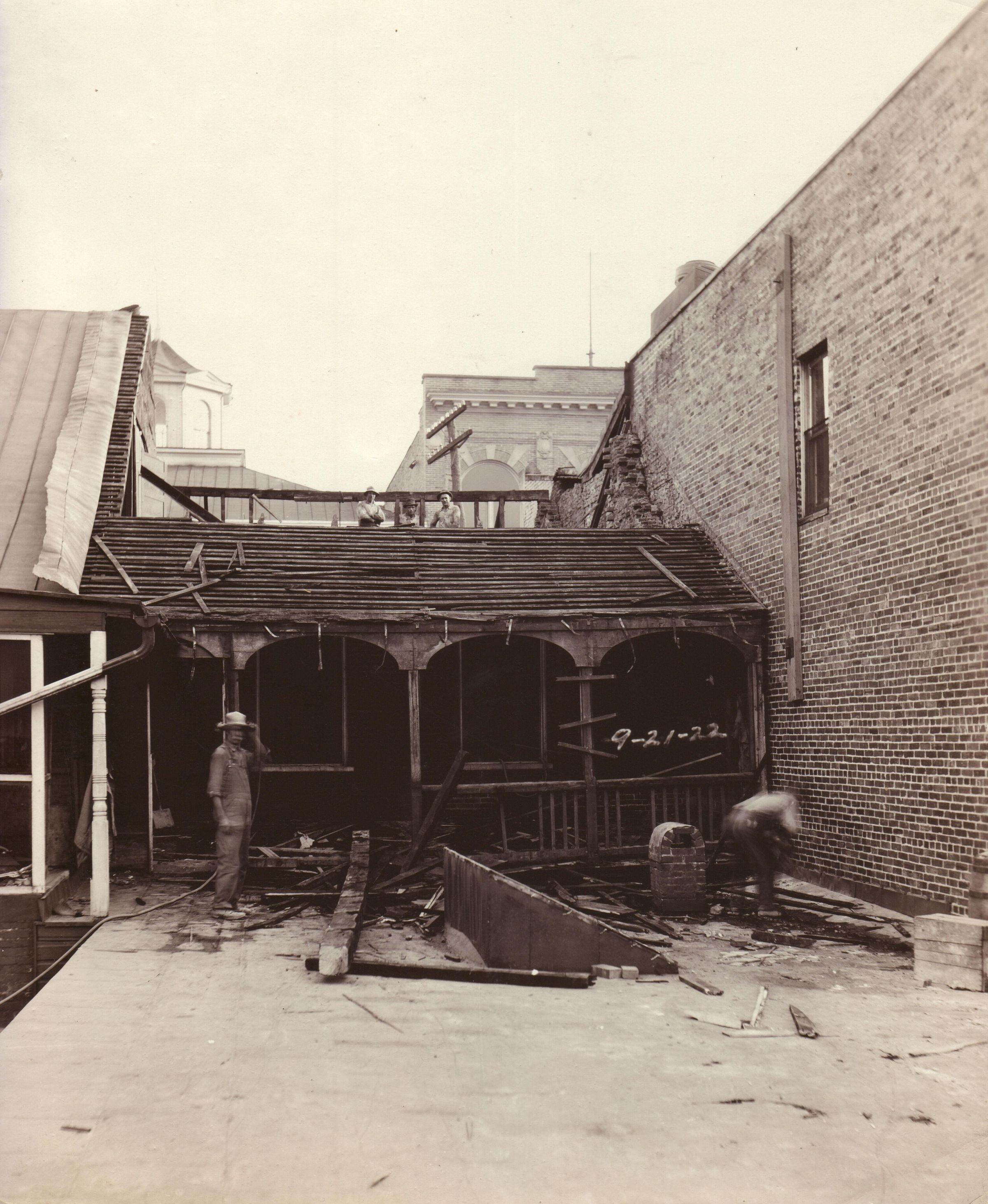 Source Citation: Building being torn down to make room for Citizens National Bank, item no. GCHS-AN027-0001-0052, Greene County Historical Society Collection, Greene Connections Archives Project (www.GreeneConnections.com).