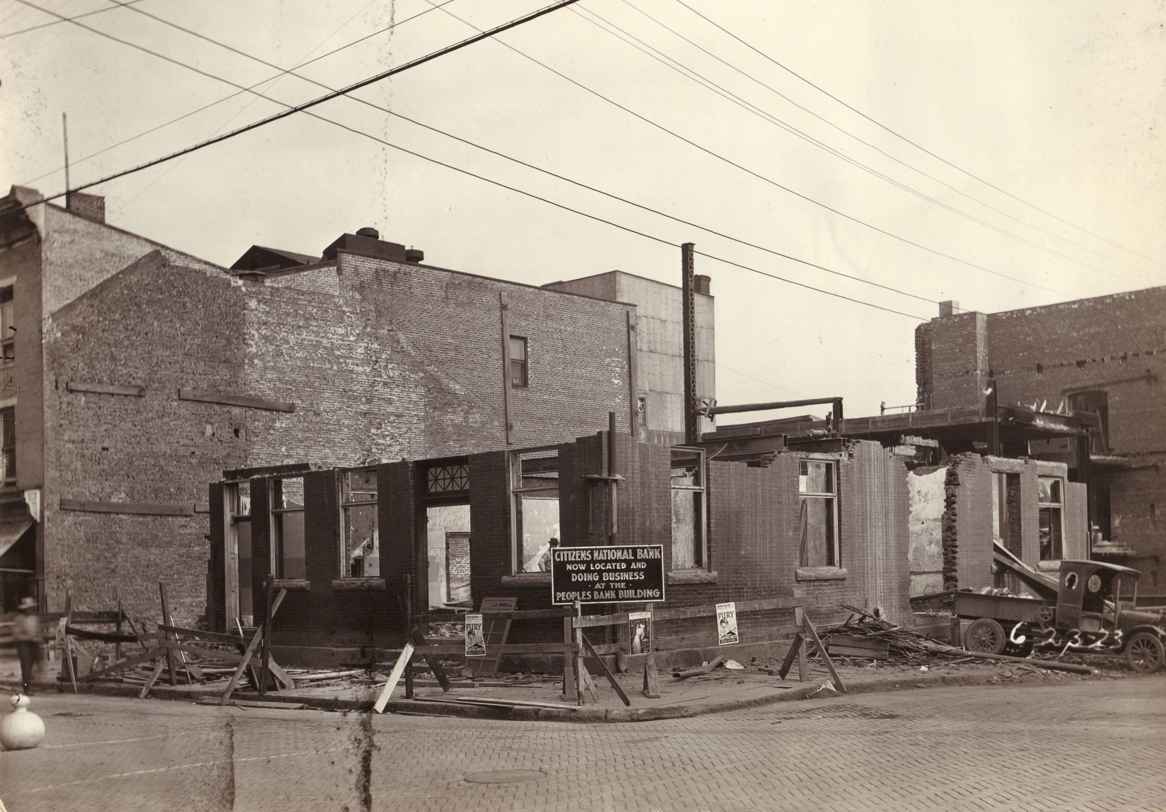 Source Citation: Buildings being torn down to make room for Citizens National Bank, item no. GCHS-AN027-0001-0069, Greene County Historical Society Collection, Greene Connections Archives Project (www.GreeneConnections.com).