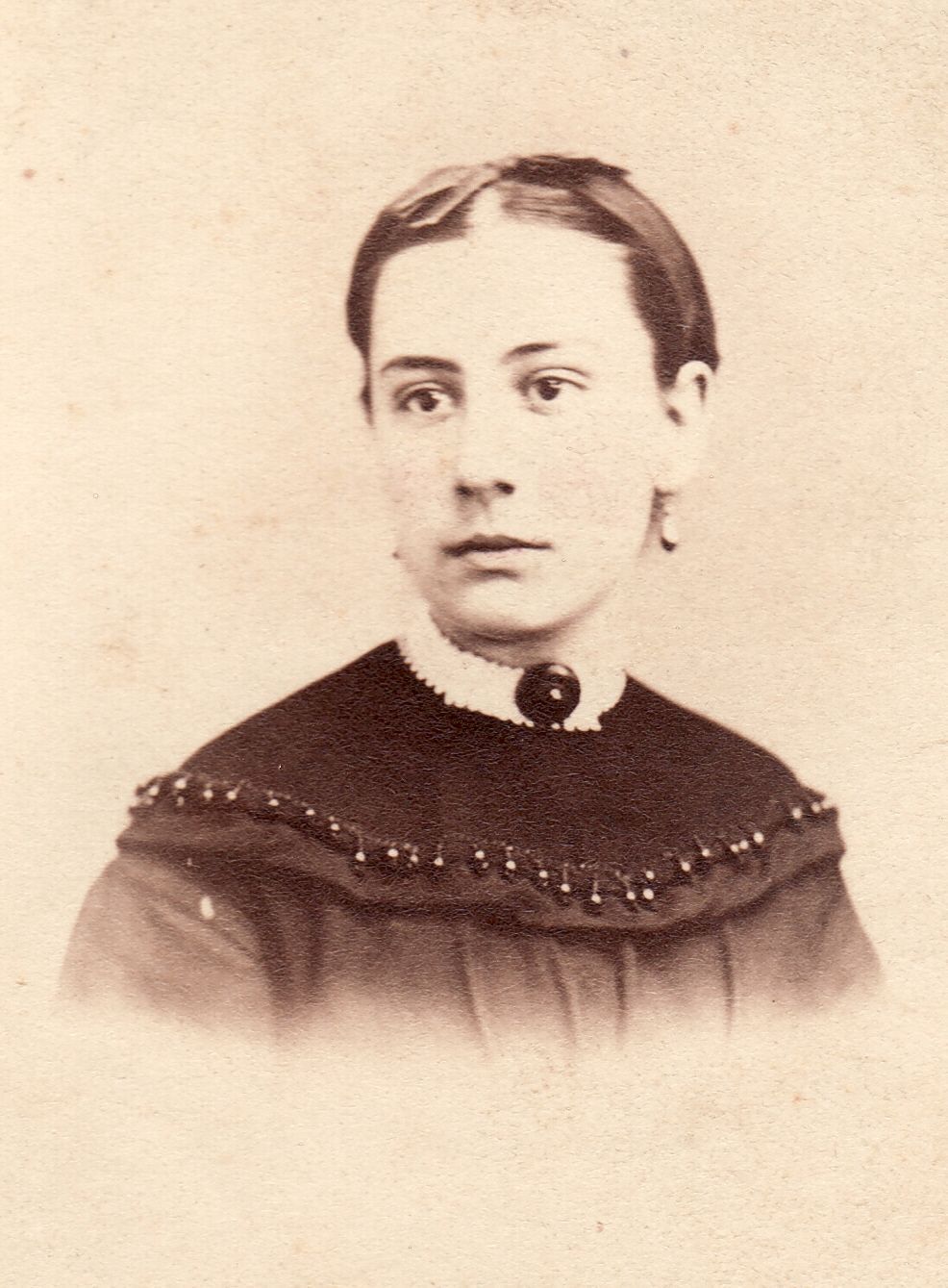 Carte-de-Visite photograph of Ms. Daugherty [top of photograph was cut, probably to fit it into the album, and her first name lost from the caption with the cutting].