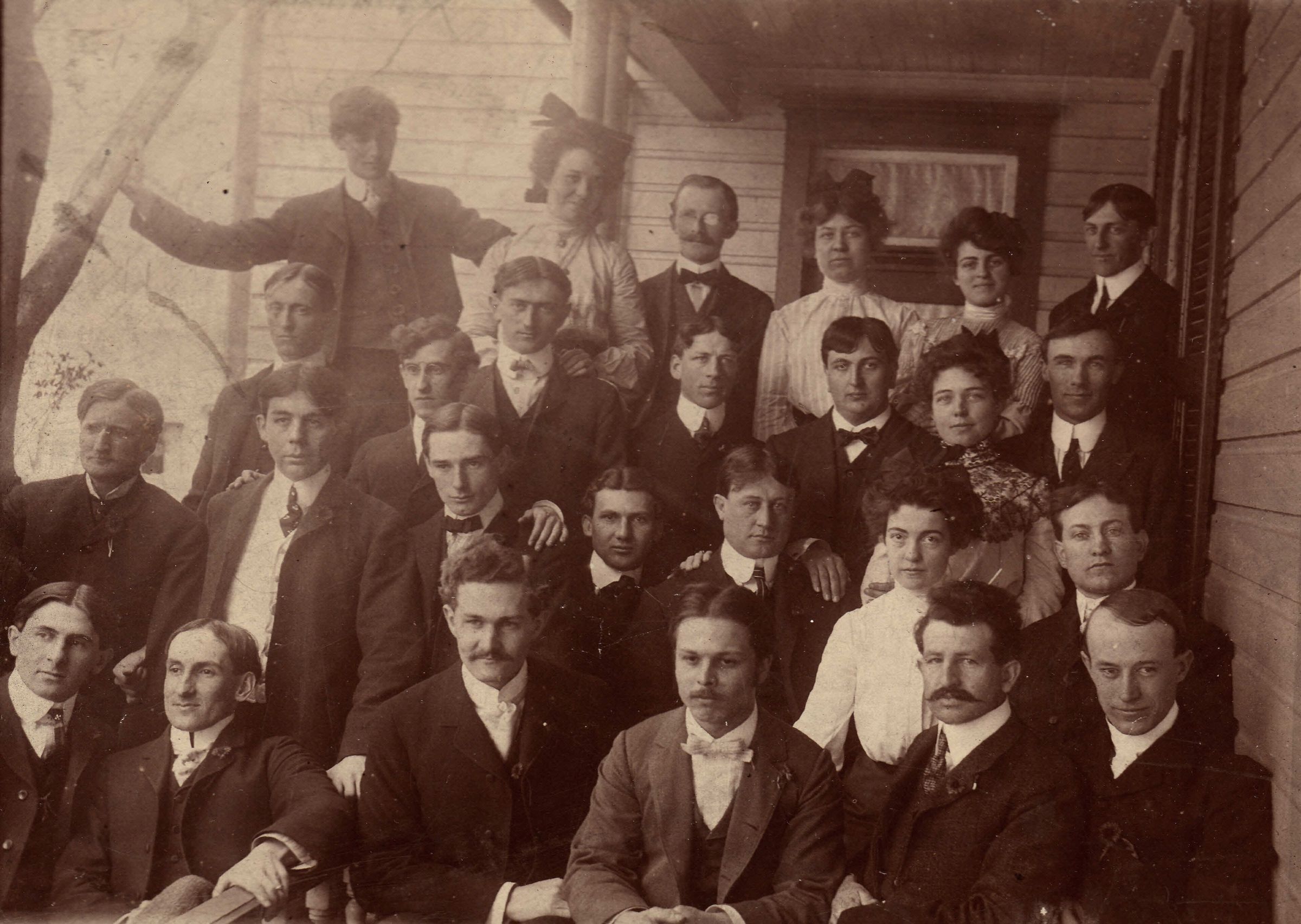 SOURCE CITATION: [Front row, second from left] Clyde J. Headlee [1880-1904] - son of Joseph Headlee and Catherine Henderson; circa 1900-1904; item no. HEAT_AN001_0010, Headlee Series, Thomas Headlee Collection, Greene Connections Archives Project (www.GreeneConnections.com).