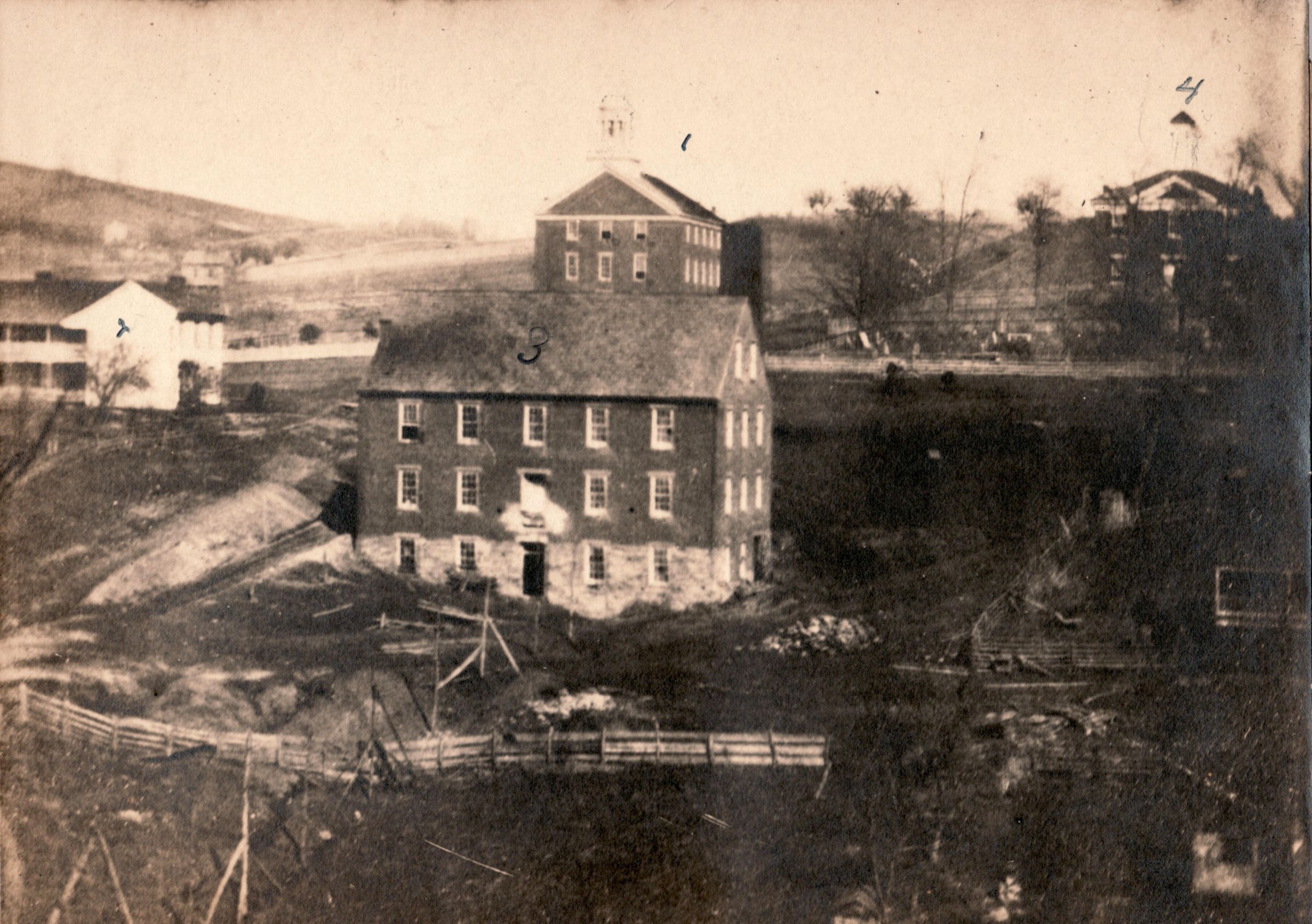 3) Grist Mill. Later the location of Stewart Hall, Waynesburg University.
