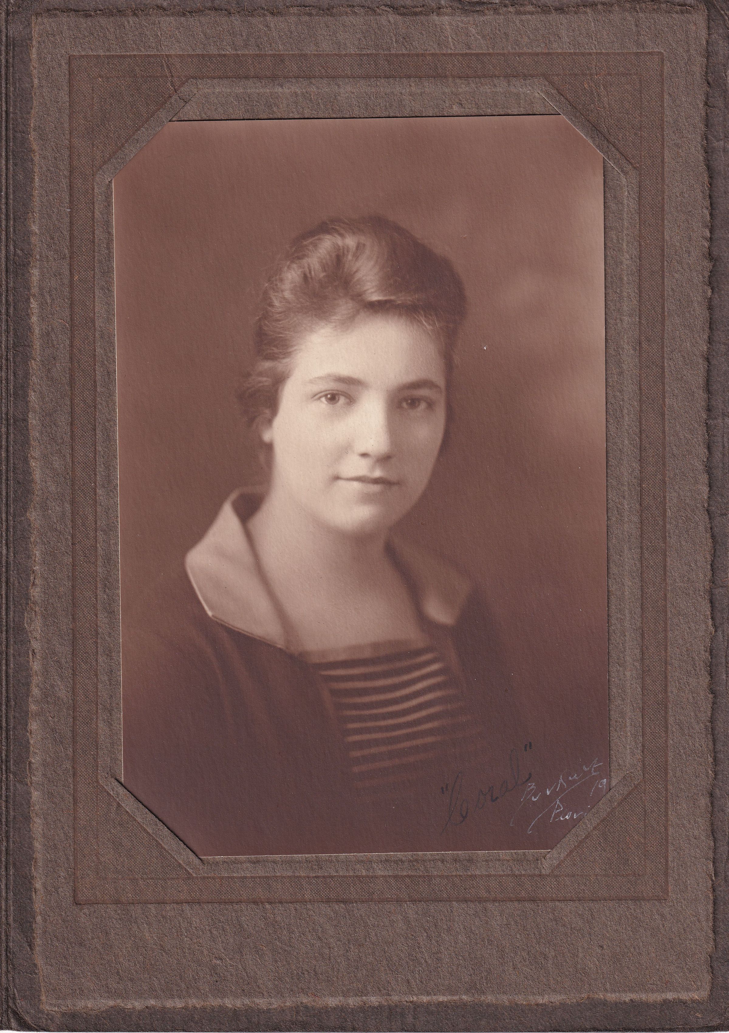 SOURCE CITATION: Coral Maurine (Jury) Burdon [1900-1943] - daughter of Frank Jury and Margaret Ann Thompson; dated 1919, Peoria, Illinois; item no. CGSP-AN015-0017, Samuel Thompson Series, donated by Donald Mohr, 2017; Cornerstone Genealogical Society Collection; Greene Connections Archives Project (GreeneConnections.com).