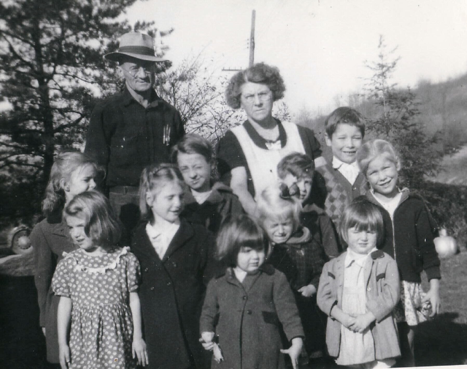 Stacy Niles Staggers and his wife, Nellie Mae (Rush) Staggers, with their grandchildren, pictured [Left-Right]