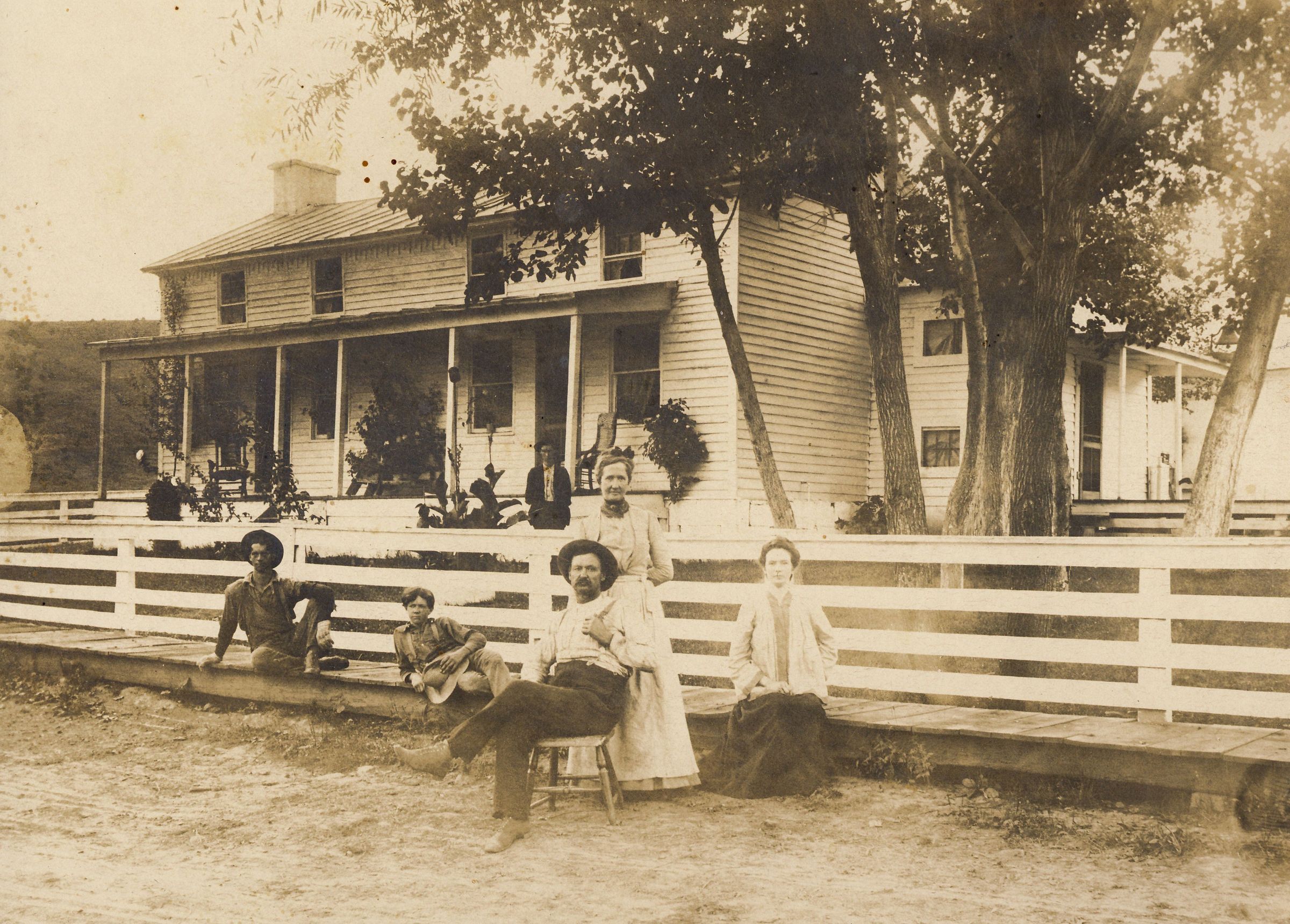 SOURCE CITATION: John Pierce Eakin family in front of the home he built, in Gilmore Township, Greene County, Pennsylvania; item no. HOYJ-AN001-0004, Athaliah Frances (Clovis) Hoy Collection, shared by James Michael Hoy; Greene Connections Archives Project (GreeneConnections.com).