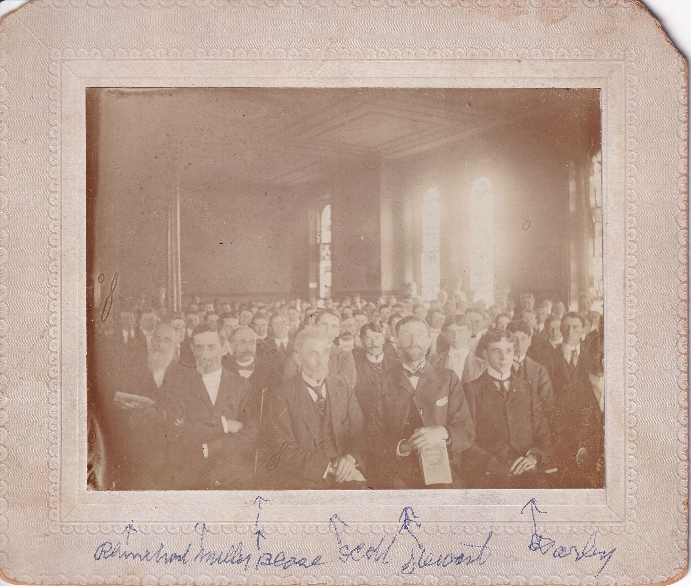 FRONT ROW - President Alfred Brashear Miller [1829-1902], Professor Walter Guy Scott [1832-1922], Professor Ezra DeGarmo Stewart [1857-1928], Professor Darby, others unidentified.