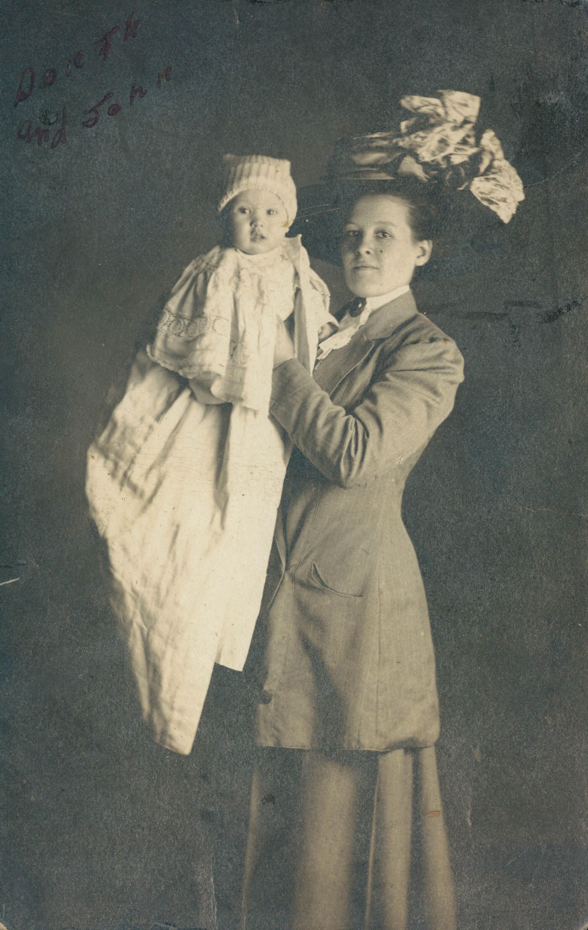 Source Citation: Dorothy Blanche (King) Everhart holding her son John Everhart, item no. CROU-AN003-0006, Scott and Teresa (Crouse) Roberts Collection, Greene Connections Archives Project (www.GreeneConnections.com).
