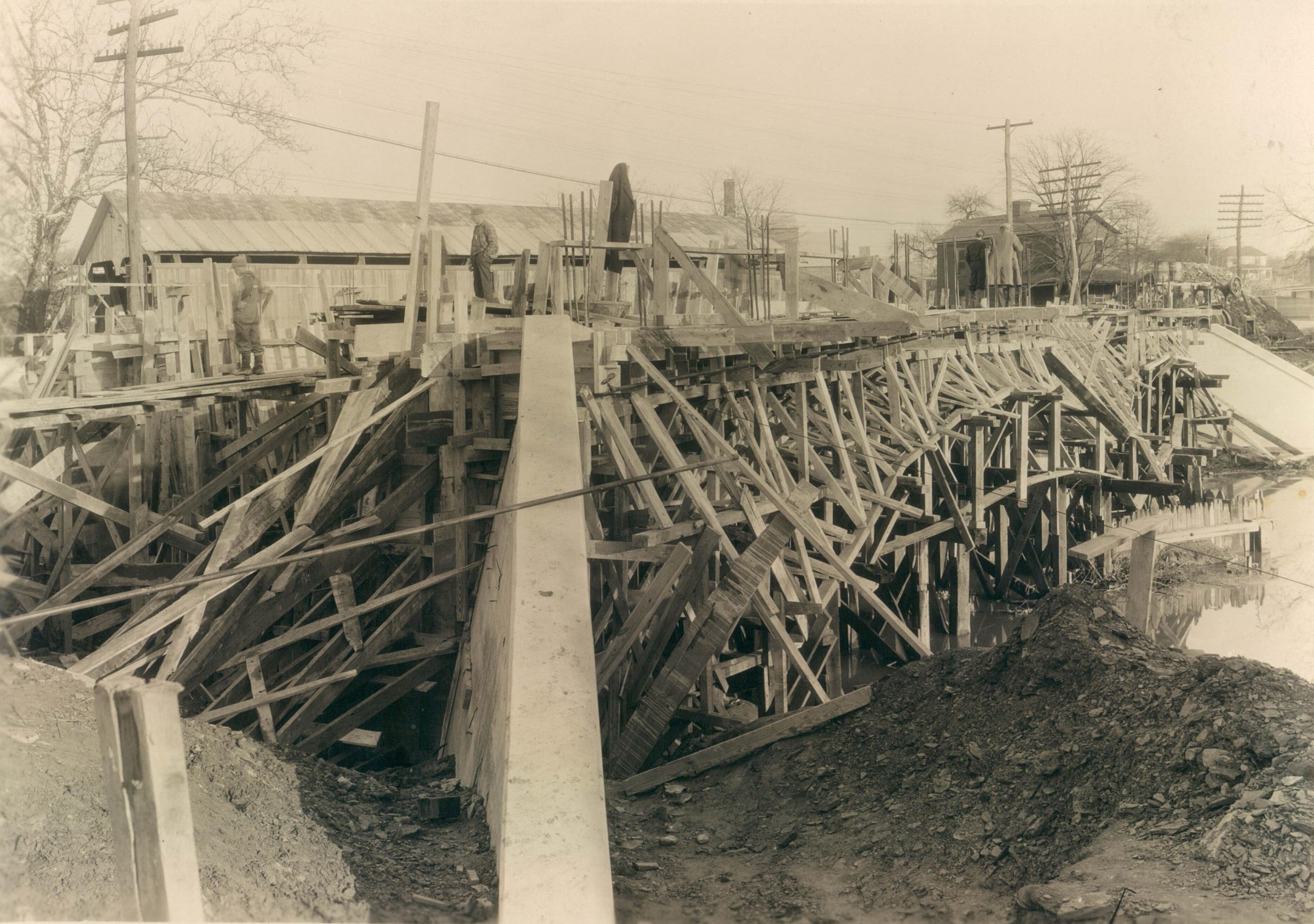 Source Citation: Double-lane covered bridge and new Freedom Bridge where Greene Street crosses Ten Mile Creek in Waynesburg, Greene County, Pennsylvania, photograph by William E. S. Fletcher, item no. CGSP_AN007_0031, Cornerstone Genealogical Society Collection, Greene Connections Archives Project (www.GreeneConnections.com).