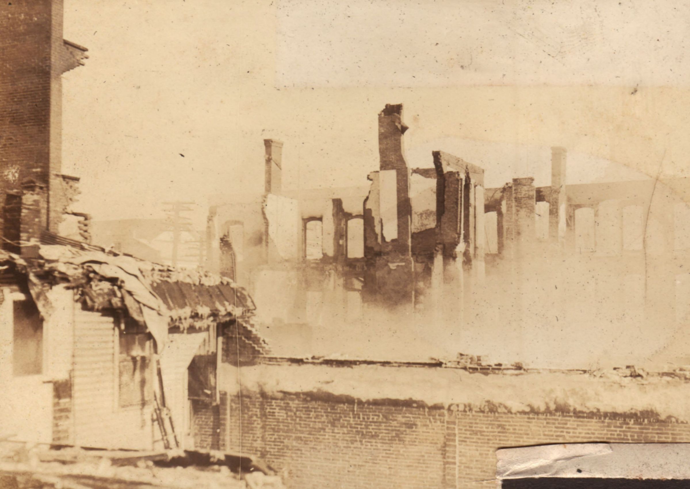 Source Citation: Downey House fire, item no. JACD_AN002_0047, William Francis Jacobs Collection, shared by David Kent Jacobs, Greene Connections Archives Project (www.GreeneConnections.com).