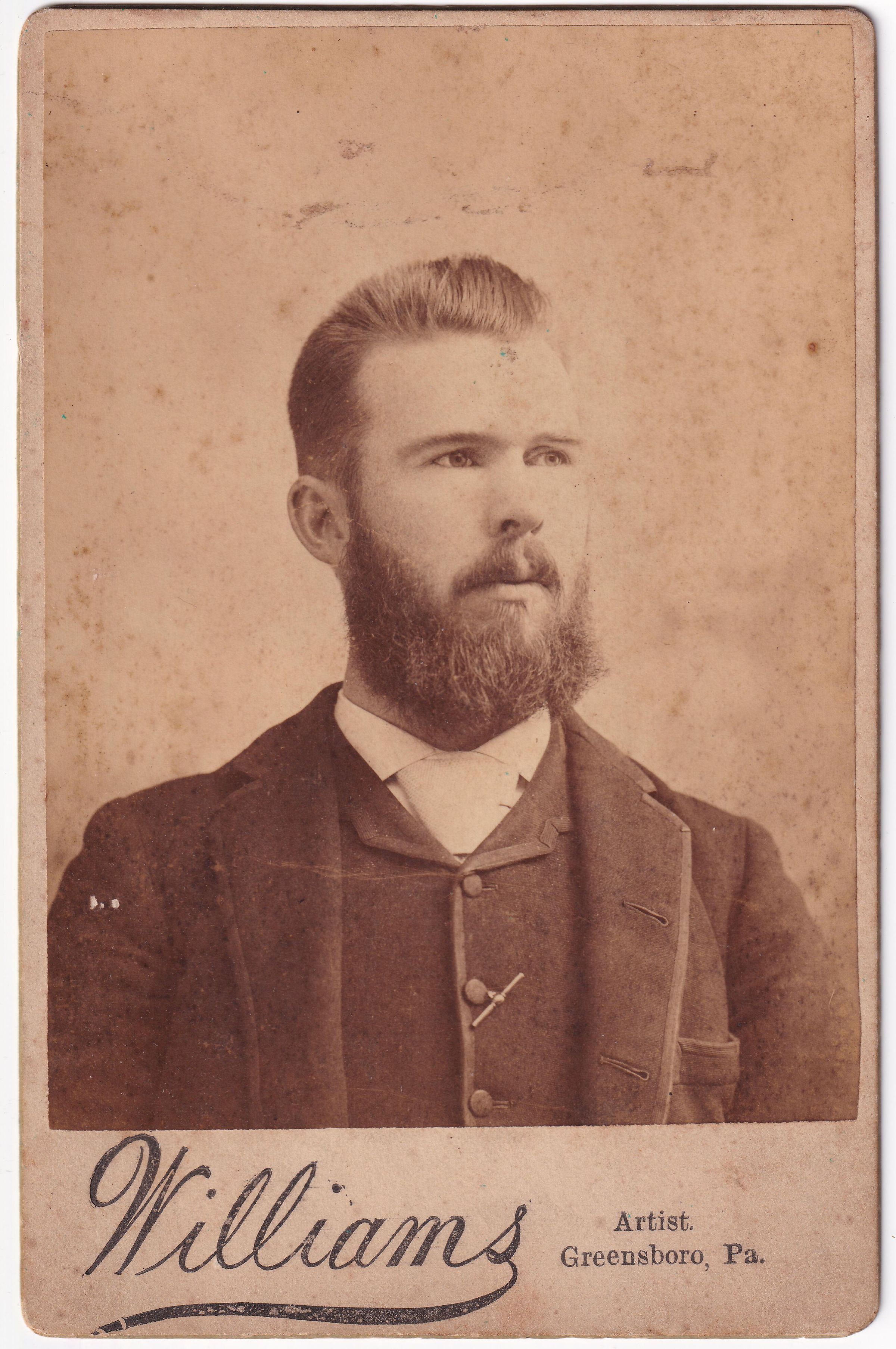 Source Citation: Dr. Benjamin Jones Birch [circa 1863-] - son of Dr. George F. Birch and Adelia Jones; circa 1890-1900; item no. MONO-AN002-0001, Miscellaneous Series, Monon Center Collection, Greene Connections: Greene County, Pennsylvania Archives Project (www.GreeneConnections.com).