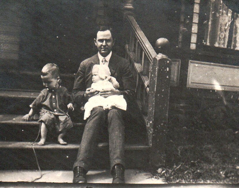 SOURCE CITATION: [Left-Right]: Charles Jackson Meek [1916-1998], Dr. Charles Roscoe Meek [1887-1958] holding Cemantha Jane (Meek) Egan [1917-1996]; circa 1917; item no. CARP-AN006-0018, Sellers Burdette and Bettie (Blake) Carpenter Collection, shared by their heirs; Greene Connections Archives Project (GreeneConnections.com).