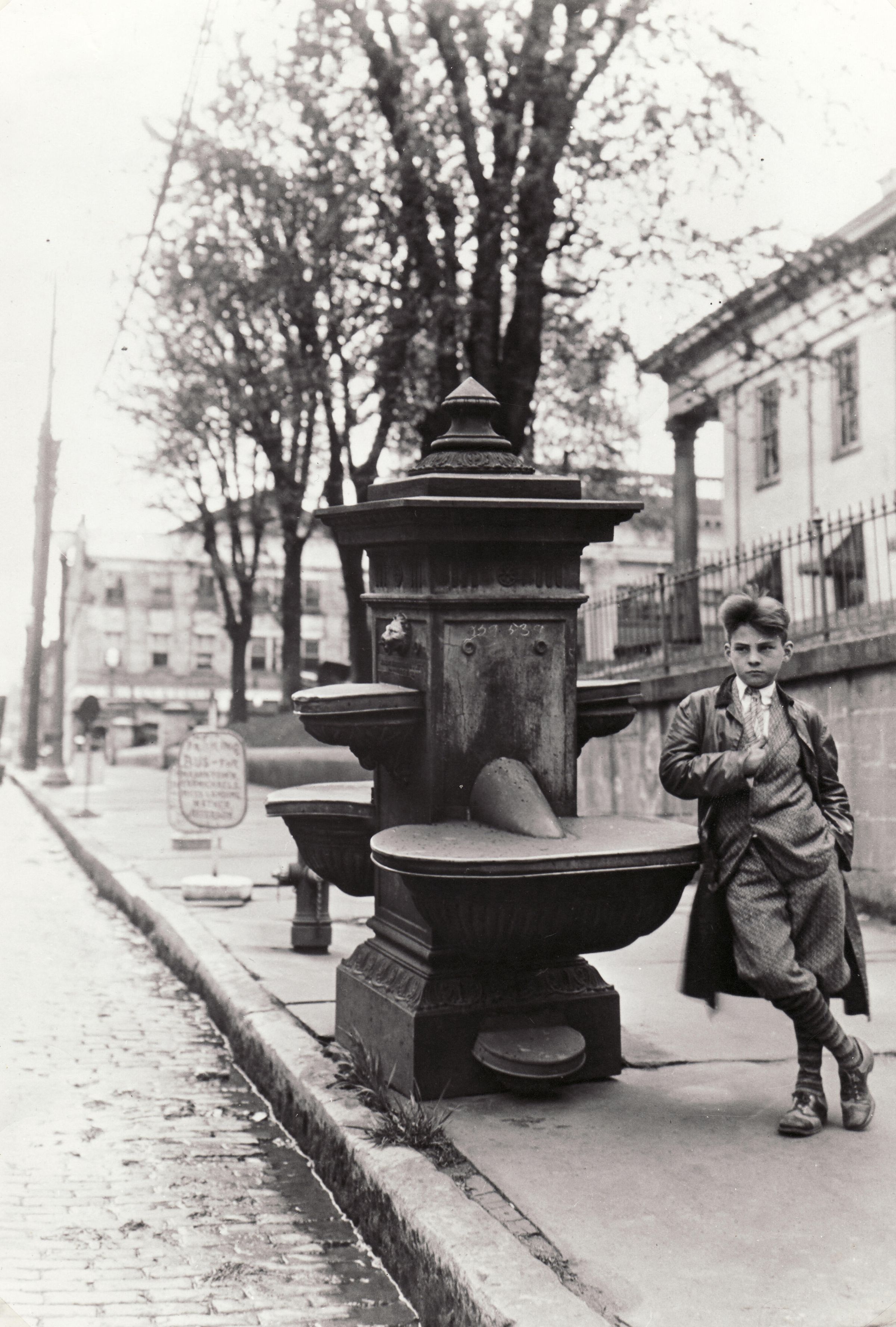Source Citation: Drinking fountain near the Courthouse on Washington Street (looking north) in Waynesburg, item no. GCHS-AN027-0001-0033, Greene County Historical Society Collection, Greene Connections Archives Project (www.GreeneConnections.com).