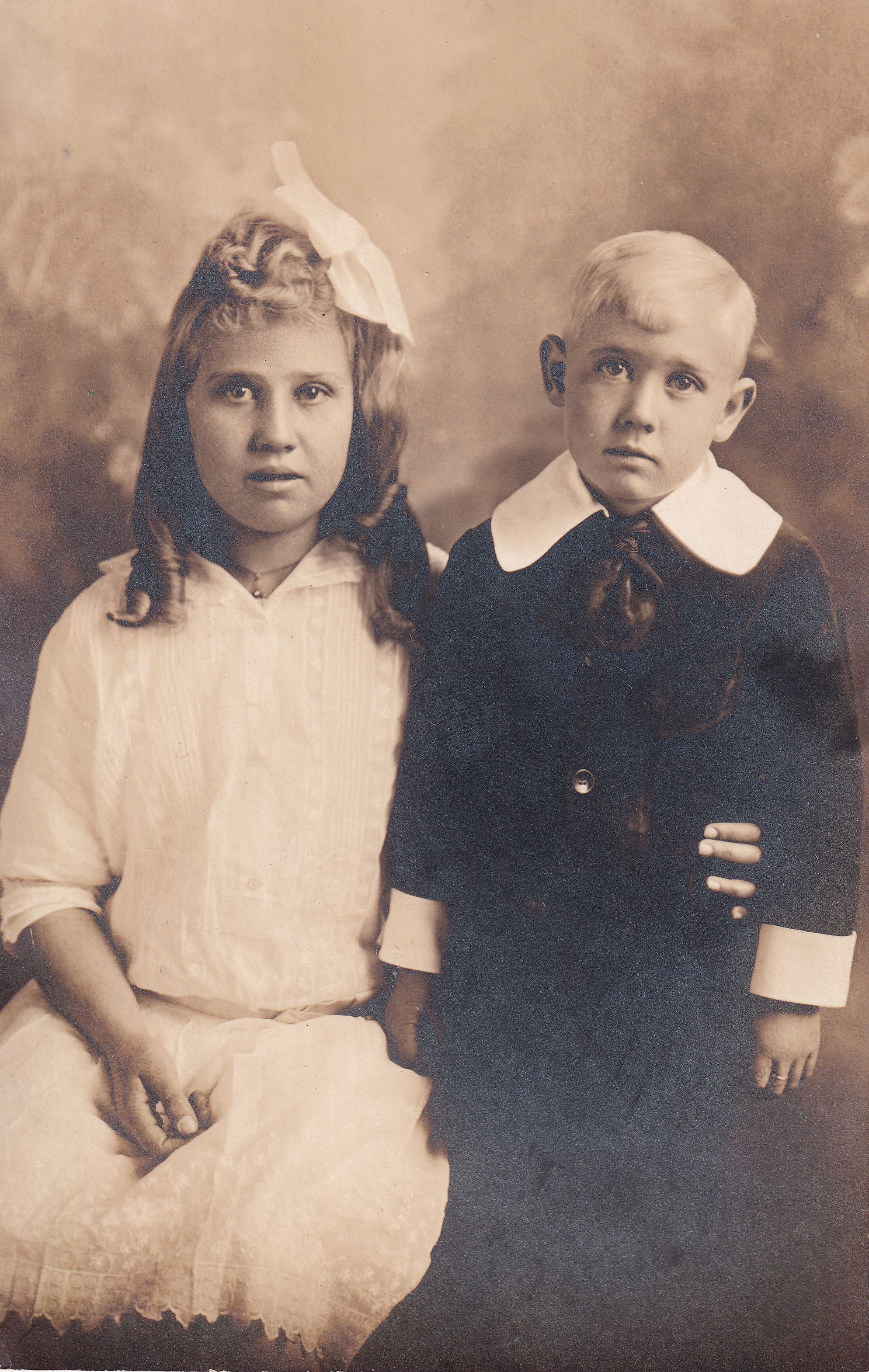 SOURCE CITATION: [Left-Right]: Pearl Maurine Vance [1907-1999] and Glenn Elmo Vance [1912-2002] - children of Jacob Vance and Minnie King; circa 1917-1918; item no. MILB-AN001-0006-0005, Vance Series, Mary (Vance) McCann Collection, shared by her grandson, William Marshall Miller; Greene Connections Archives Project (www.GreeneConnections.com).