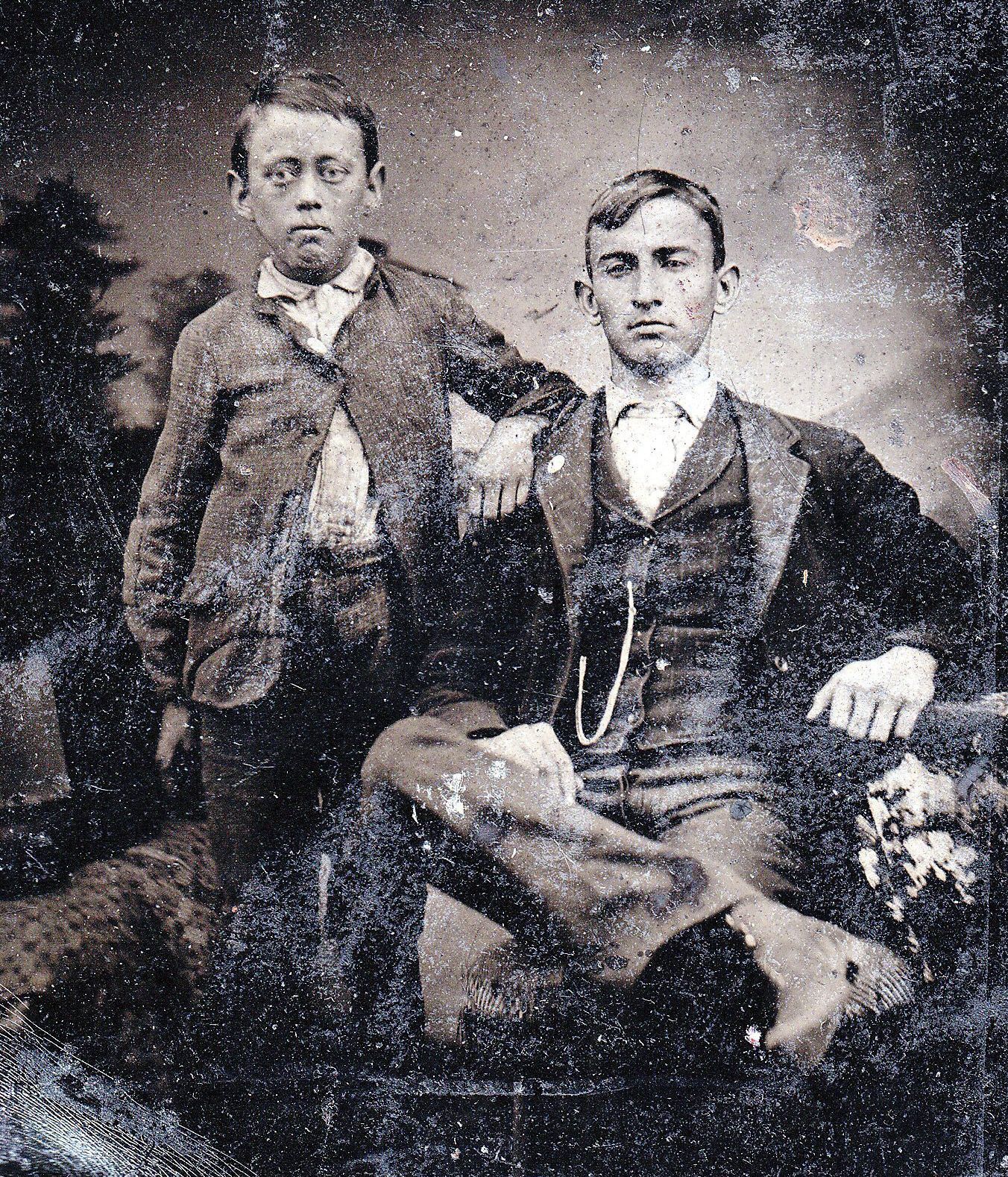 SOURCE CITATION: [Left-Right]: John Henry Debolt [1884-1979] and James Corbly McFarland [1875-1945]; circa 1890-1900; item no. MILB-AN002-0004, McFarland Series, Mary (Vance) McCann Collection, shared by her grandson, William Marshall Miller; Greene Connections Archives Project (www.GreeneConnections.com).