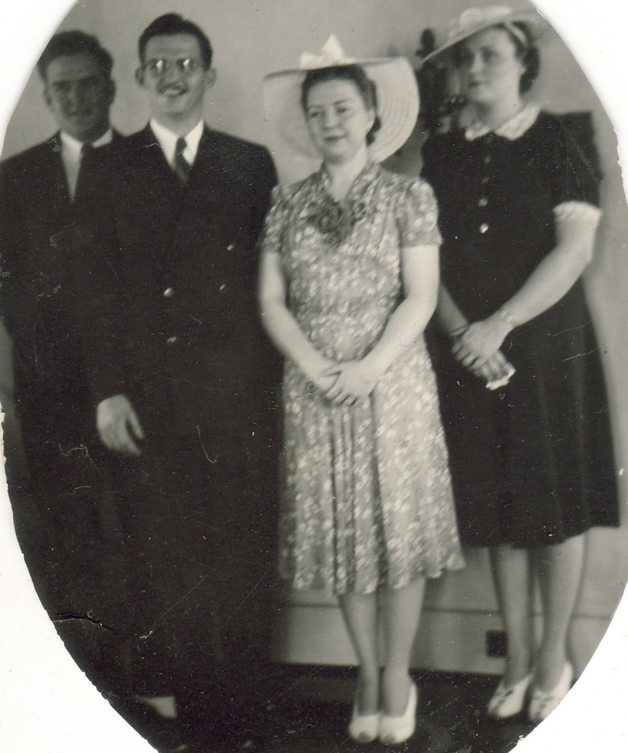 SOURCE CITATION: [Left-Right]: Earl Bryan Jacobs, Alvan Allison, Coradel Lucile (Jacobs) Allison, Louise (Widdup) Jacobs; item no. JACB_AN001_0062, Helen Mae (Jacobs) Fonner Collection, shared by George and Anna (Fonner) Blystone; Greene Connections Archives Project (GreeneConnections.com).