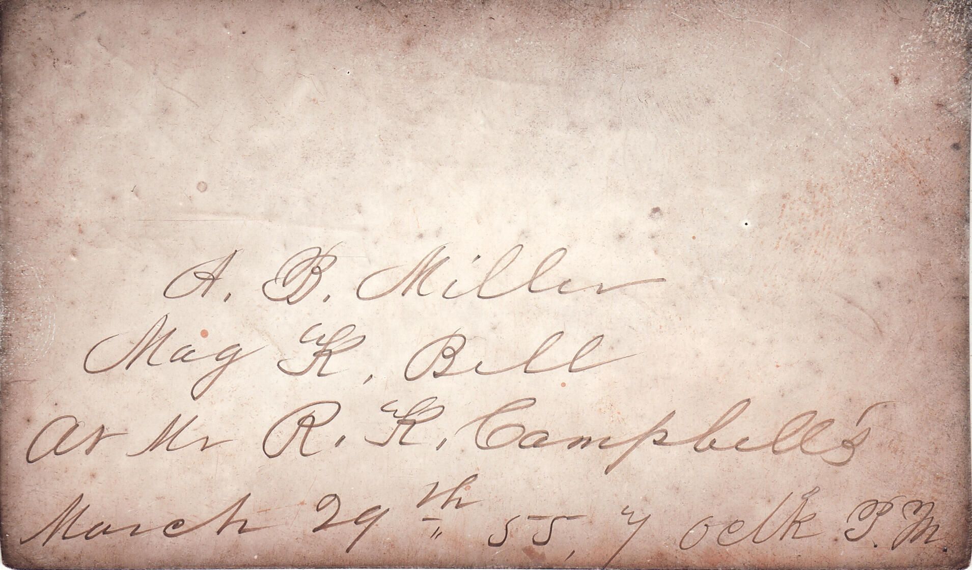 The Miller Series photographs and documents were passed from Alfred Brashear Miller [1829-1902] and his wife, Margaret Kerr Bell [1826-1874], to their eldest daughter, Lida C. (Miller) Simpson [1856-1919] and her husband, Dr. Theodore Parker Simpson [1856-1934], to their daughter Kate McBeth (Simpson) Merrick [1884-1959] and her husband, Silas Clarence Merrick [1879-1942], to their only son, Robert Silas Merrick [1914-2002], and his wife, Eva Mae Christie [1918-2005], to their grandson, Peter Merrick who owned and shared the collection with the Greene Connections: Greene County, Pennsylvania Archives Project in 2012.