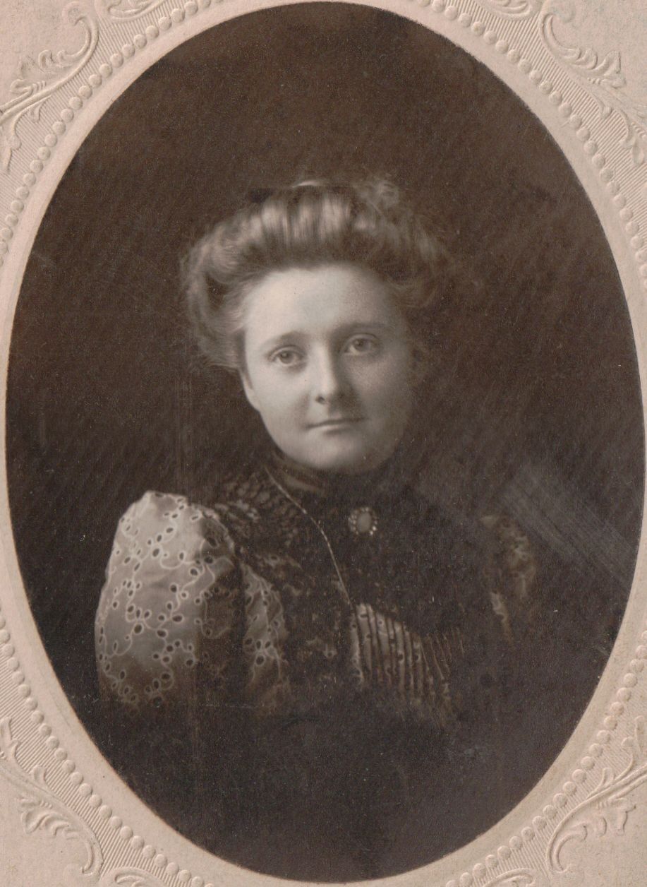 SOURCE CITATION: Edna Irene (Moore) Scott [1882-1941]; circa 1900, image by Babbitt, Waynesburg, Pa.; item no. CARP-AN004-0034, Sellers Burdette and Bettie (Blake) Carpenter Collection, shared by their heirs; Greene Connections Archives Project (GreeneConnections.com).