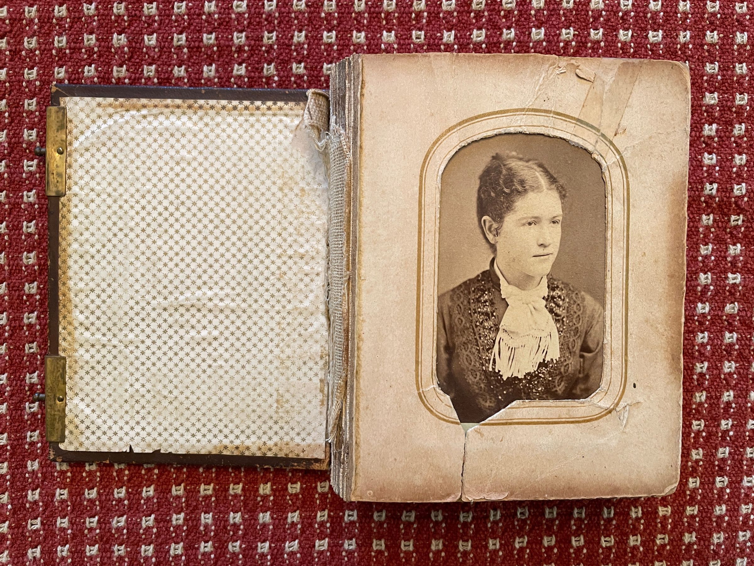 The Eleanor (Morris) Linskea Album originally belonged to Eleanor (Morris) Linskea [1835-1889], wife of John B. Linskea, daughter of John Morris and Charlotte Nichols. The carte-de-visite size album is inscribed on the front cover with her name, "Elly A. Linskea." After Eleanor's death at Dixmont State Hospital in Kilbuck Township, Allegheny County, Pennsylvania, the album appears to have passed to her brother, Jonathan Morris Morris [1832-1915], whose descendants have maintained it as part of his family collection.