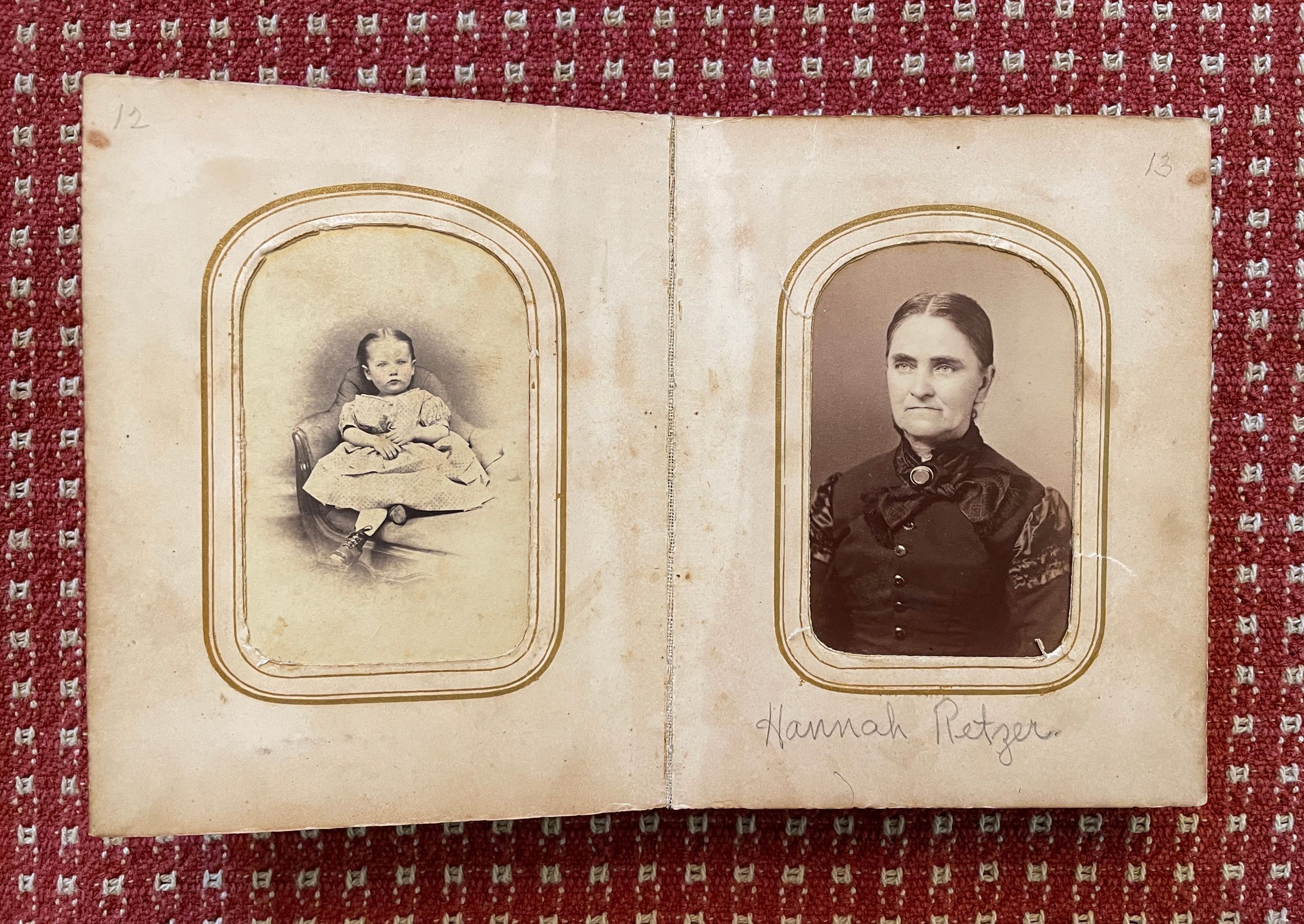 The Eleanor (Morris) Linskea Album originally belonged to Eleanor (Morris) Linskea [1835-1889], wife of John B. Linskea, daughter of John Morris and Charlotte Nichols. The carte-de-visite size album is inscribed on the front cover with her name, "Elly A. Linskea." After Eleanor's death at Dixmont State Hospital in Kilbuck Township, Allegheny County, Pennsylvania, the album appears to have passed to her brother, Jonathan Morris Morris [1832-1915], whose descendants have maintained it as part of his family collection.