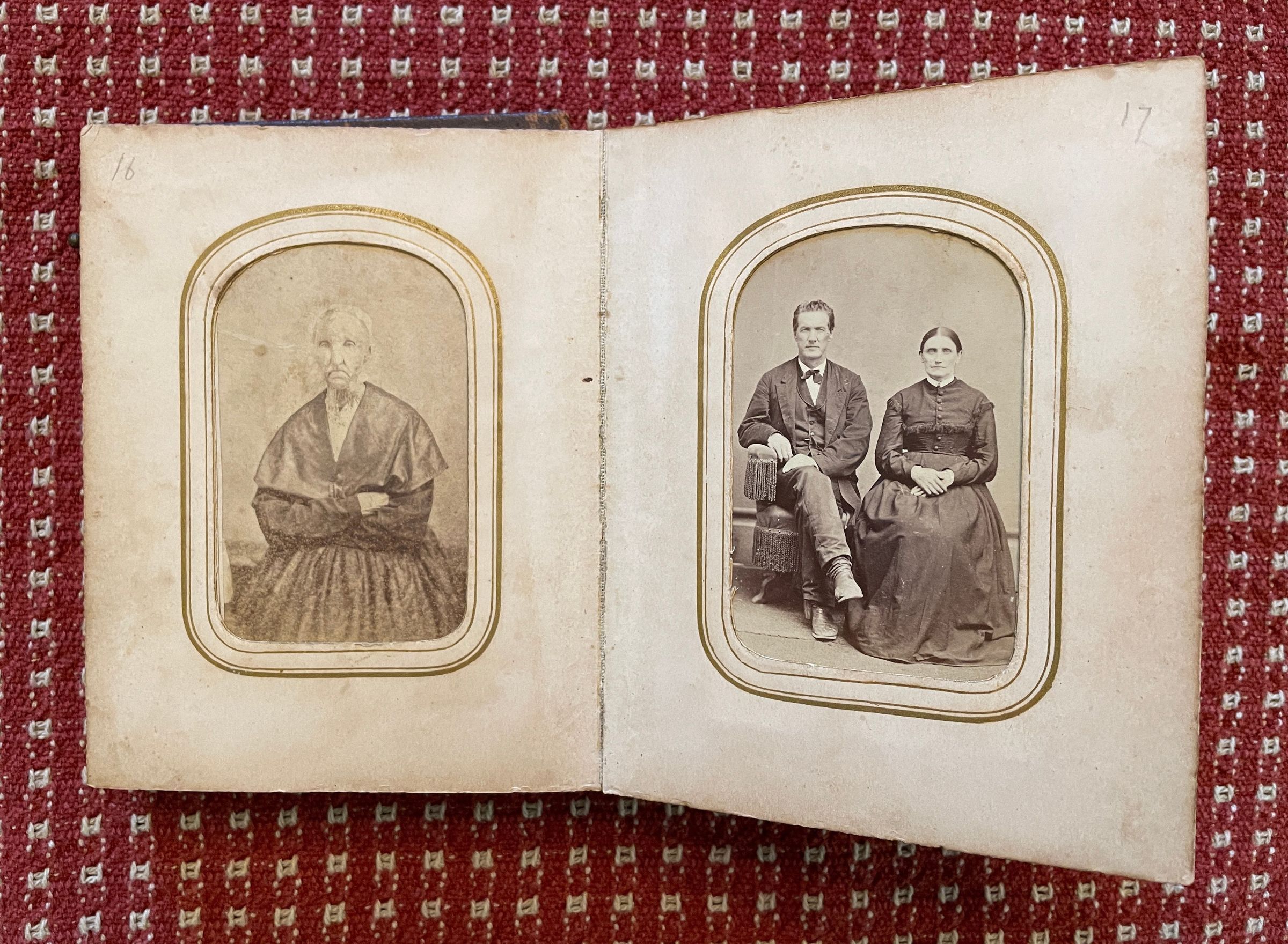 The Eleanor (Morris) Linskea Album originally belonged to Eleanor (Morris) Linskea [1835-1889], wife of John B. Linskea, daughter of John Morris and Charlotte Nichols. The carte-de-visite size album is inscribed on the front cover with her name, "Elly A. Linskea." After Eleanor's death at Dixmont State Hospital in Kilbuck Township, Allegheny County, Pennsylvania, the album appears to have passed to her brother, Jonathan Morris Morris [1832-1915], whose descendants have maintained it as part of his family collection.