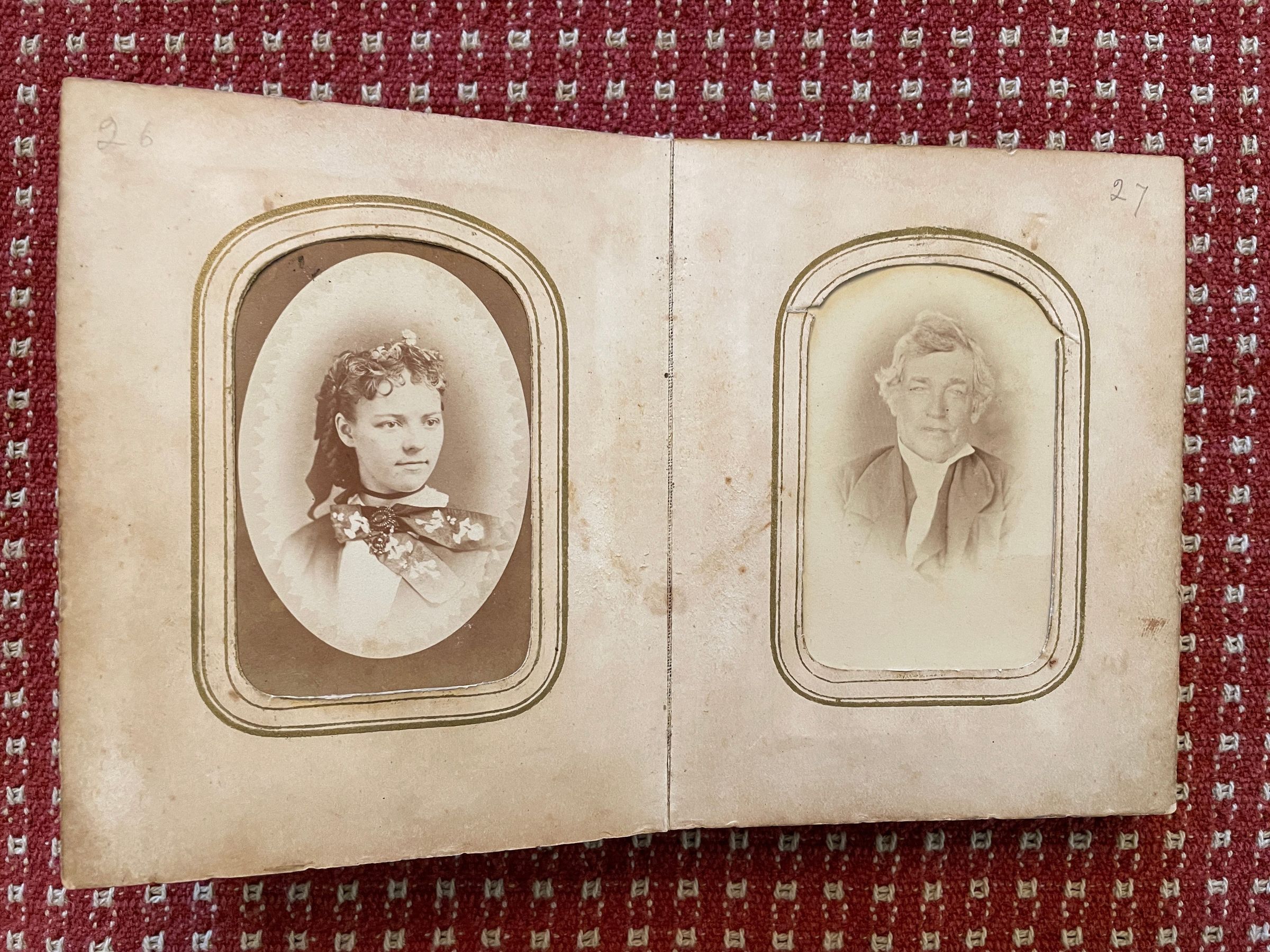 The Eleanor (Morris) Linskea Album originally belonged to Eleanor (Morris) Linskea [1835-1889], wife of John B. Linskea, daughter of John Morris and Charlotte Nichols. The carte-de-visite size album is inscribed on the front cover with her name, "Elly A. Linskea." After Eleanor's death at Dixmont State Hospital in Kilbuck Township, Allegheny County, Pennsylvania, the album appears to have passed to her brother, Jonathan Morris Morris [1832-1915], whose descendants have maintained it as part of his family collection.