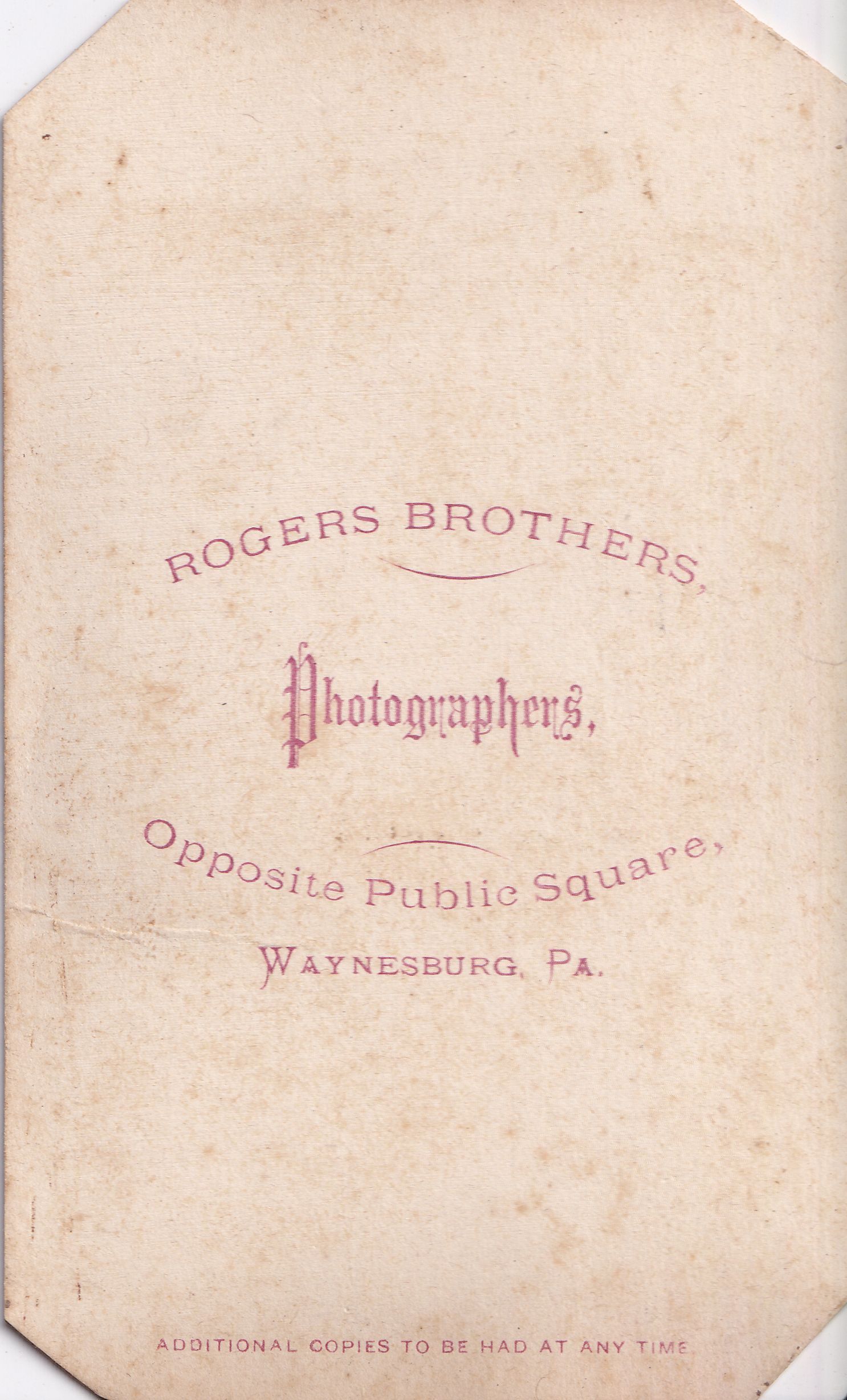 SOURCE CITATION: Eleanor (Morris) Linskea Album, Photo 23; circa 1850-1870, this carte-de-visite from Rogers Brothers, Photographers, Opposite Public Square, Waynesburg, Pa., is likely a circa 1870s-1880s reproduction of an earlier 1850s-1860s daguerreotype or ambrotype image; item no. MORK-AN001-0001-0023, Elizabeth Jane (Davis) (Rex) Morris Collection, shared by her grandchildren, John Robert Morris and Kathleen (Morris) Miller; Greene Connections Archives Project (www.GreeneConnections.com).