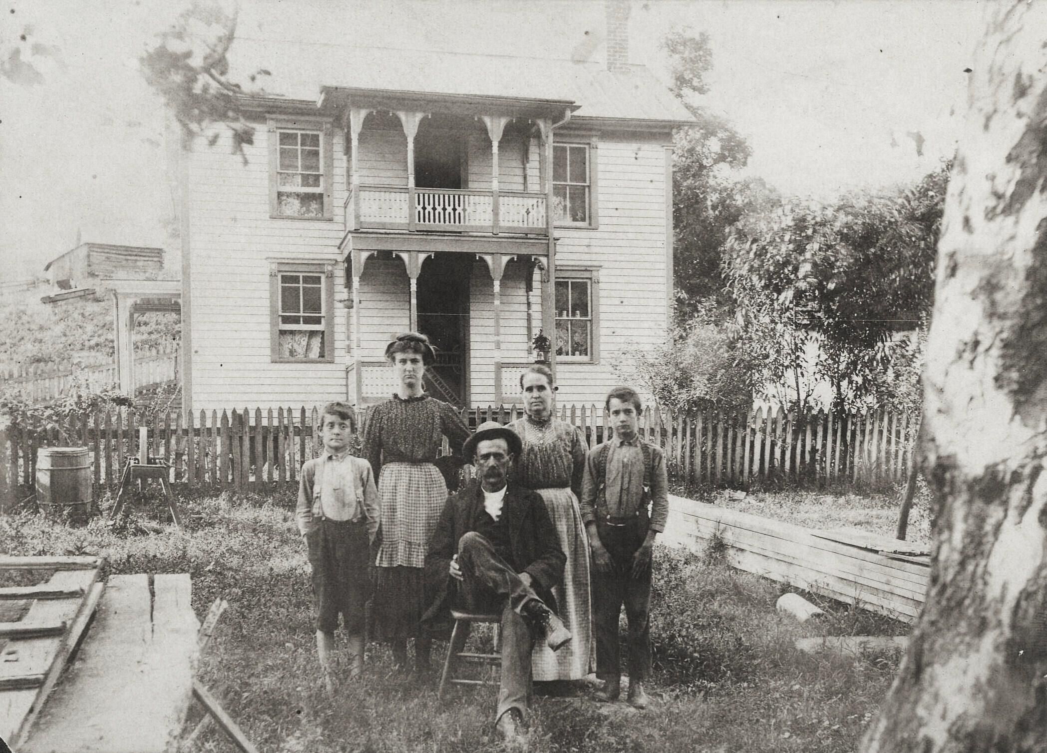 Elias Grim [1856-1919] with his wife, Mary Ellen (Ashby) Grim [1864-1932], and their three children [left-right] Jesse Perry Grim, Elizabeth Armedia Grim, Jason Grim.