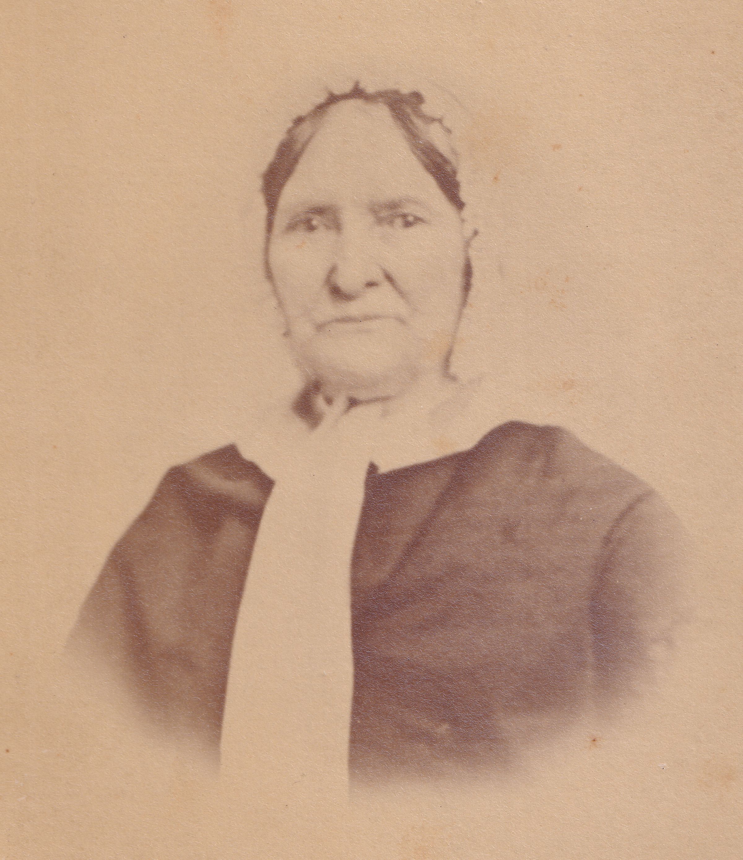 SOURCE CITATION: Elizabeth (Luckey) McConnell [1786-1863] - wife of James McConnell [1784-1840]; image is an 1870s-era reproduction by S. G. Rogers, Waynesburg, Pa., of an earlier 1850s-1860s era photograph; item no. CGSP-AN014-0001, Anna Mary (Ritchie) Armstrong Series, donated by Suzanne Floyd, 2022; Cornerstone Genealogical Society Collection, Greene Connections Archives Project (www.GreeneConnections.com).