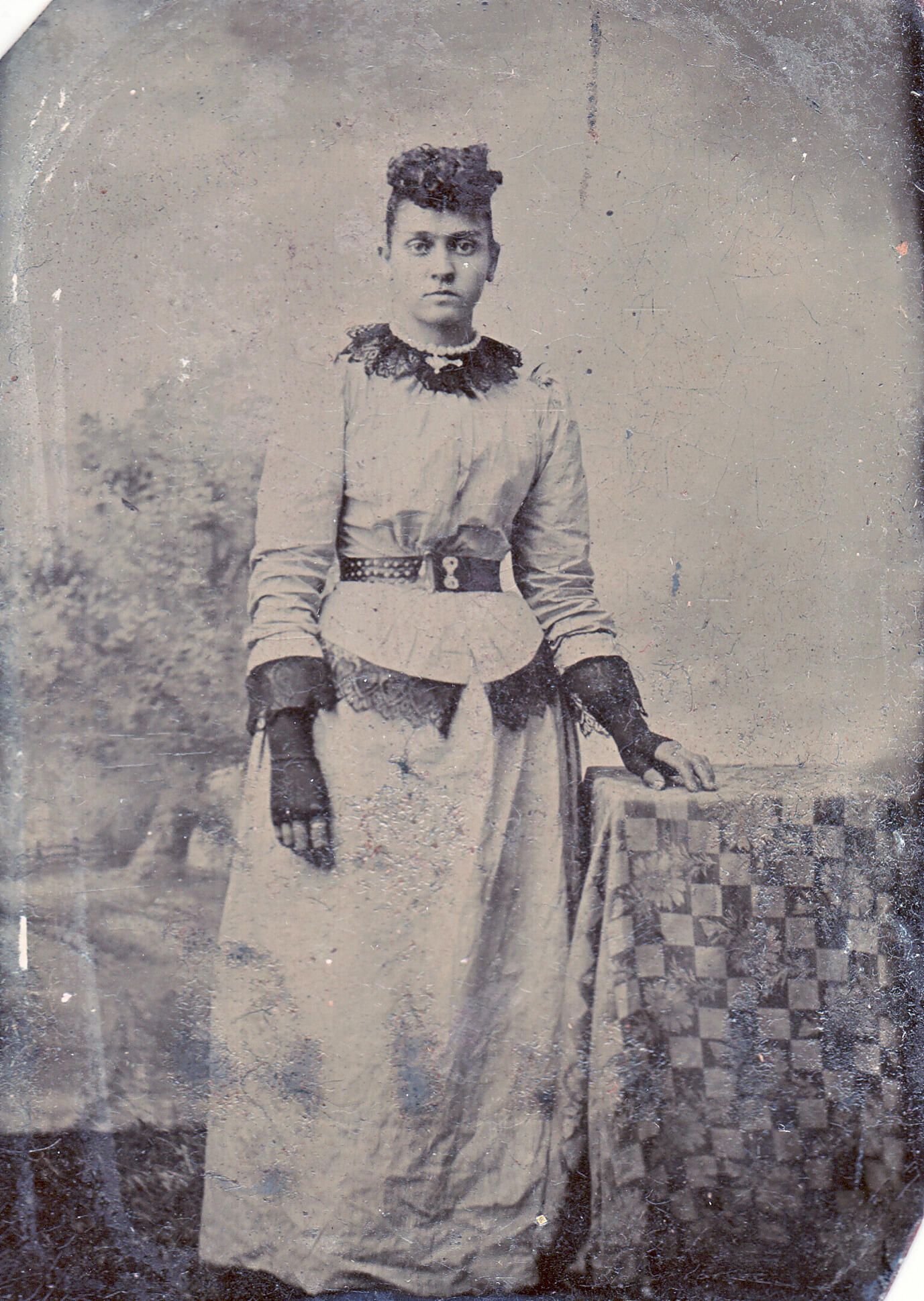 Source Citation: Circa 1880s, Unidentified tintype, Elizabeth (Woodruff) McVay Album 01, Page 01, item no. MCVA-AN004-0001-0001, Rex and Irene Marie (Morgan) McVay Collection, shared by Lisa (McVay) Hook, Greene Connections Archives Project (www.GreeneConnections.com).